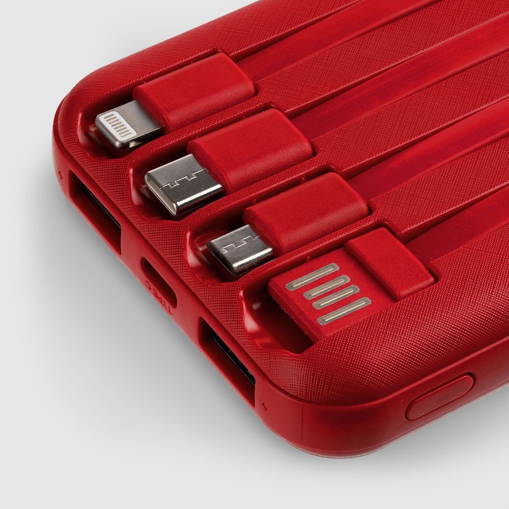Интересная особенность аккумуляторов Omni — совершенно автономная конструкция: встроенные кабели позволяют заряжать как самые разные электронные устройства, так и сам аккумулятор. Если же смартфон поддерживает беспроводной заряд, то кабель вообще не нужен. Наглядный индикатор заряда в процентах.