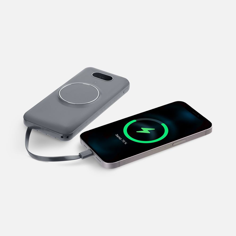 Интересная особенность аккумуляторов Omni — совершенно автономная конструкция: встроенные кабели позволяют заряжать как самые разные электронные устройства, так и сам аккумулятор. Если же смартфон поддерживает беспроводной заряд, то кабель вообще не нужен. Наглядный индикатор заряда в процентах.