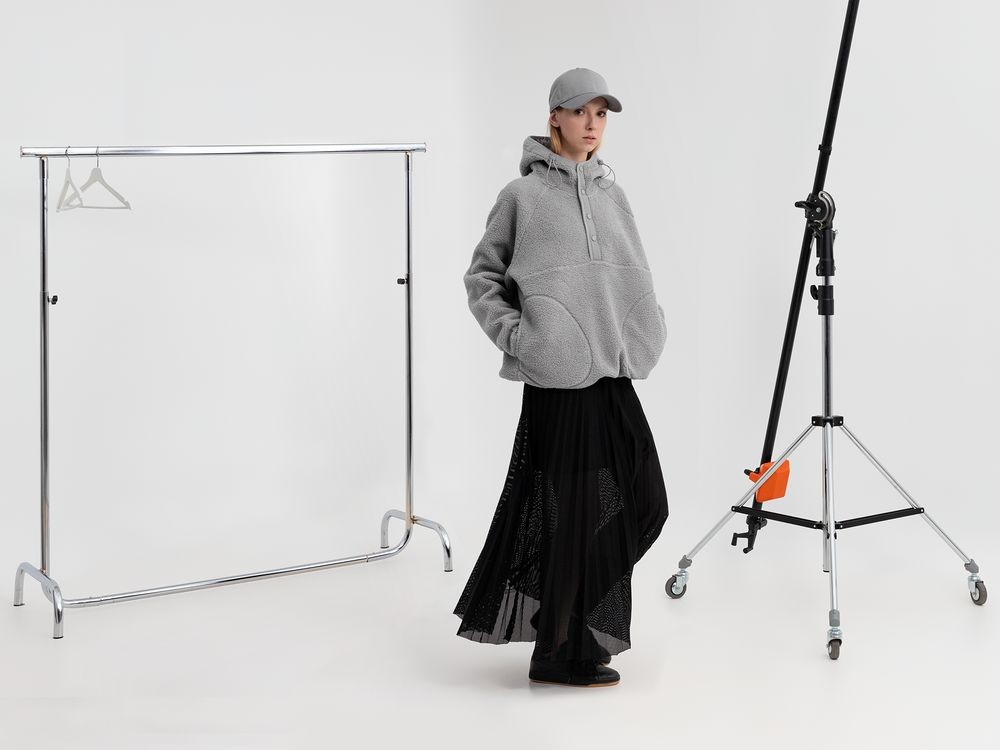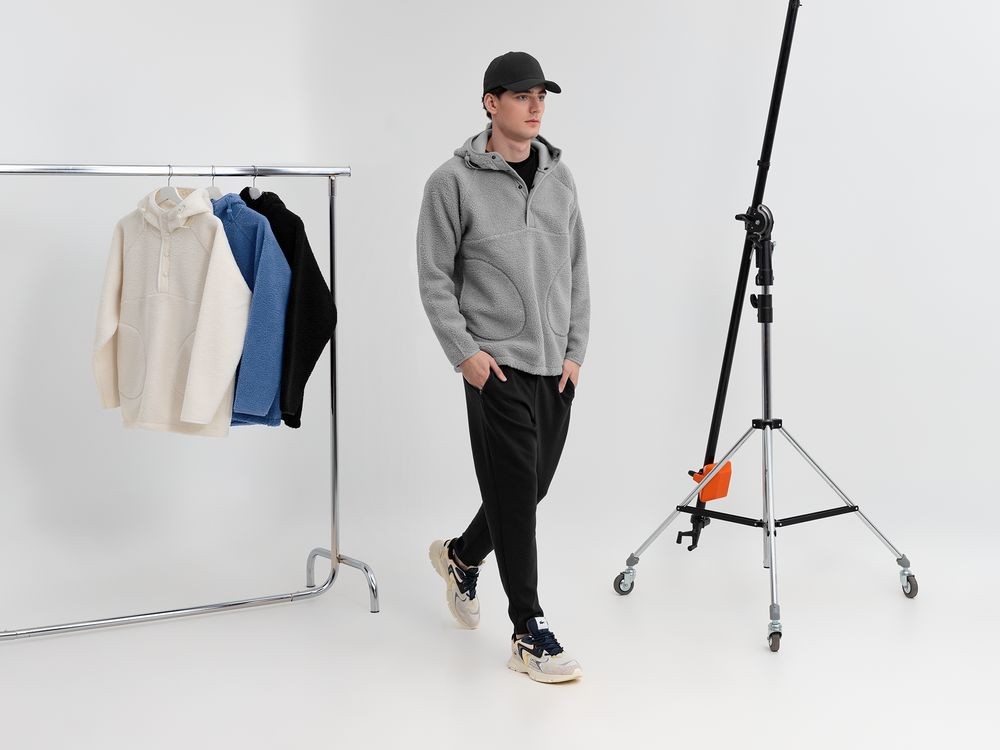 • Резинка с утяжкой на капюшоне и по низу изделия