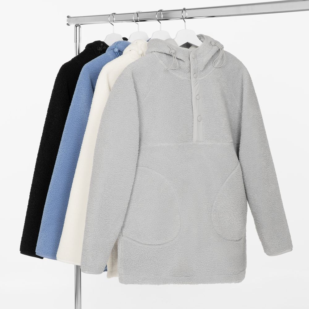 Анорак с капюшоном из современного двухслойного материала— искусственный мех снаружи, флис внутри.