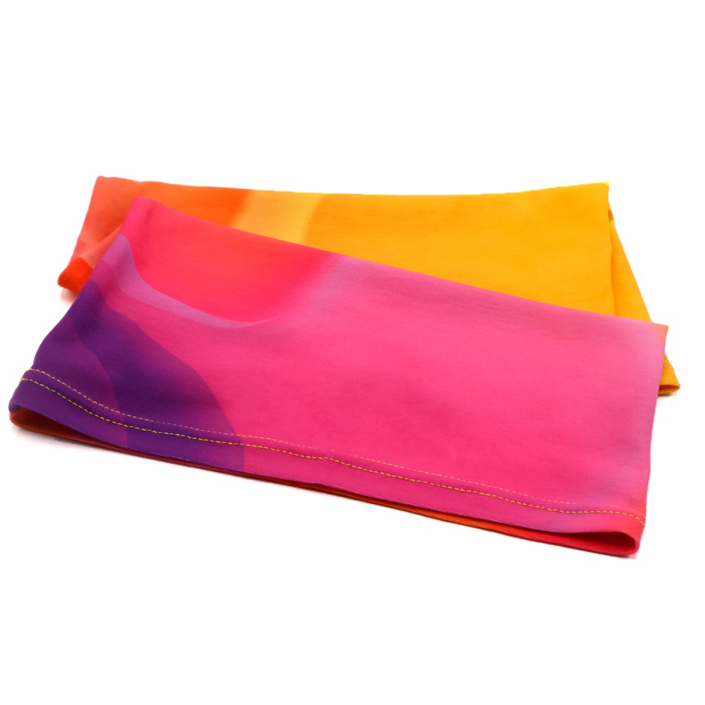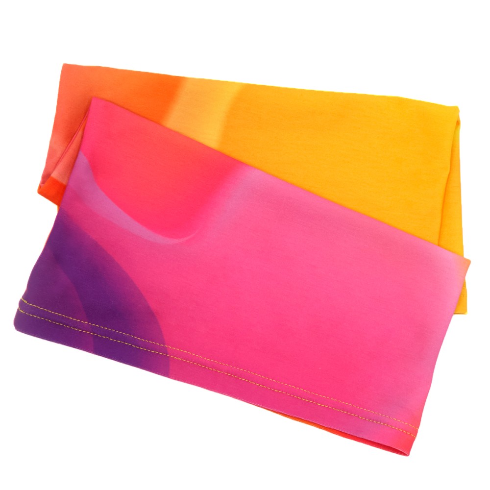 Полноцветная печать по всей поверхности от шва до шва. Возможны любые оттенки по CMYK: логотипы, надписи и разнообразные принты. Односторонняя сублимация. Однослойный круговой бафф - это шарф который можно завязывать и использовать более 10-ю разными способами: как снуд, как шапку, как нарукавник, как бандану и множество других вариантов другими.