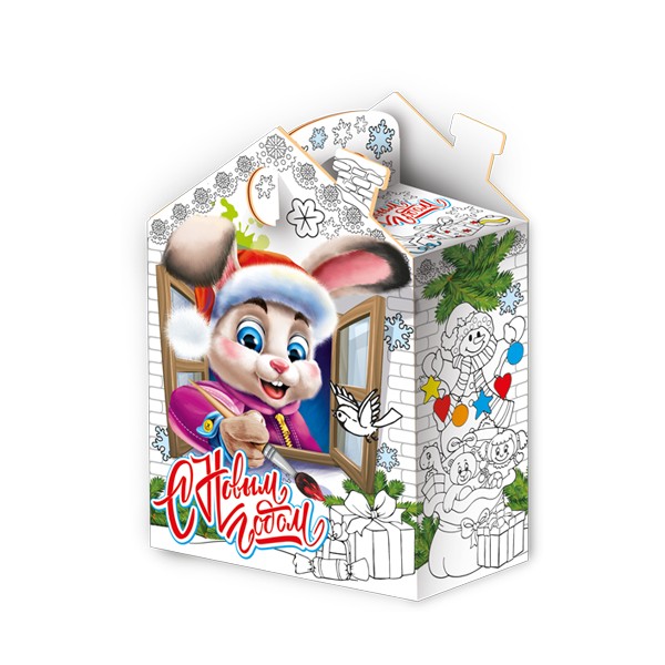 Это оригинальная упаковка, оформленная в виде зайца, который выступает в роли художника.Такая упаковка станет отличным подарком, создающим атмосферу радости и творчества в новогодние праздники.