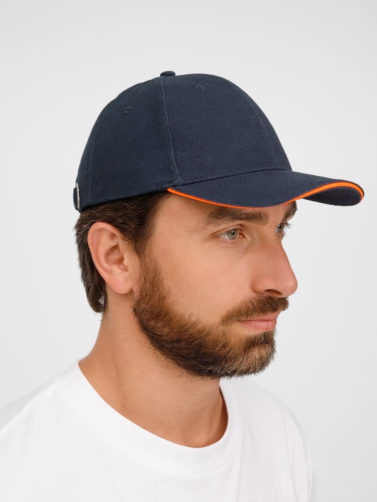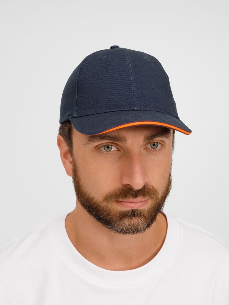 Бейсболка Buffalo, темно-синяя с неоново-оранжевым