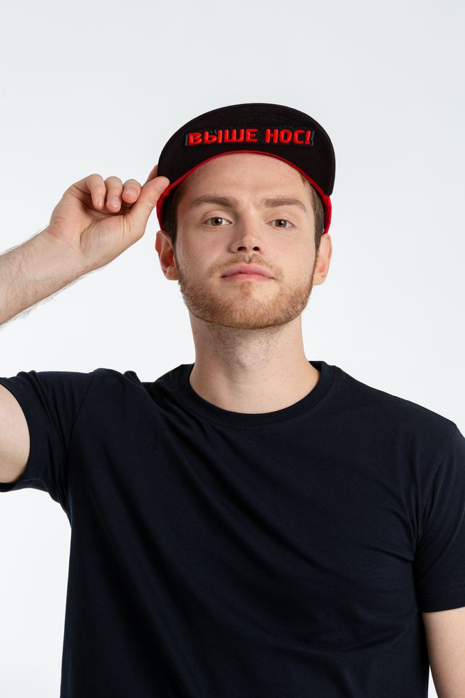 Бейсболка-снепбек «Выше нос!», красная с черным