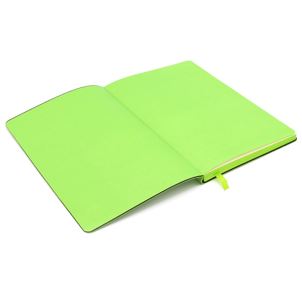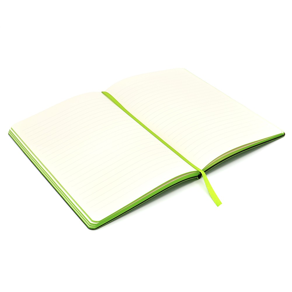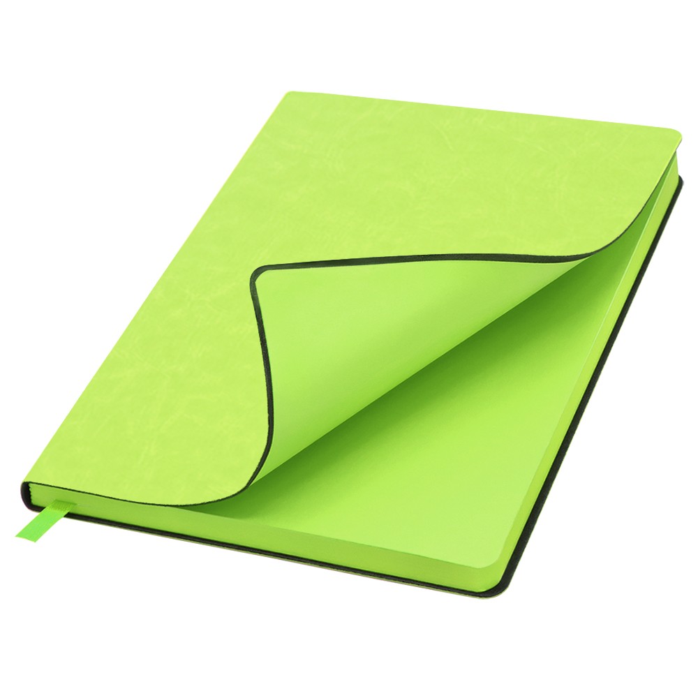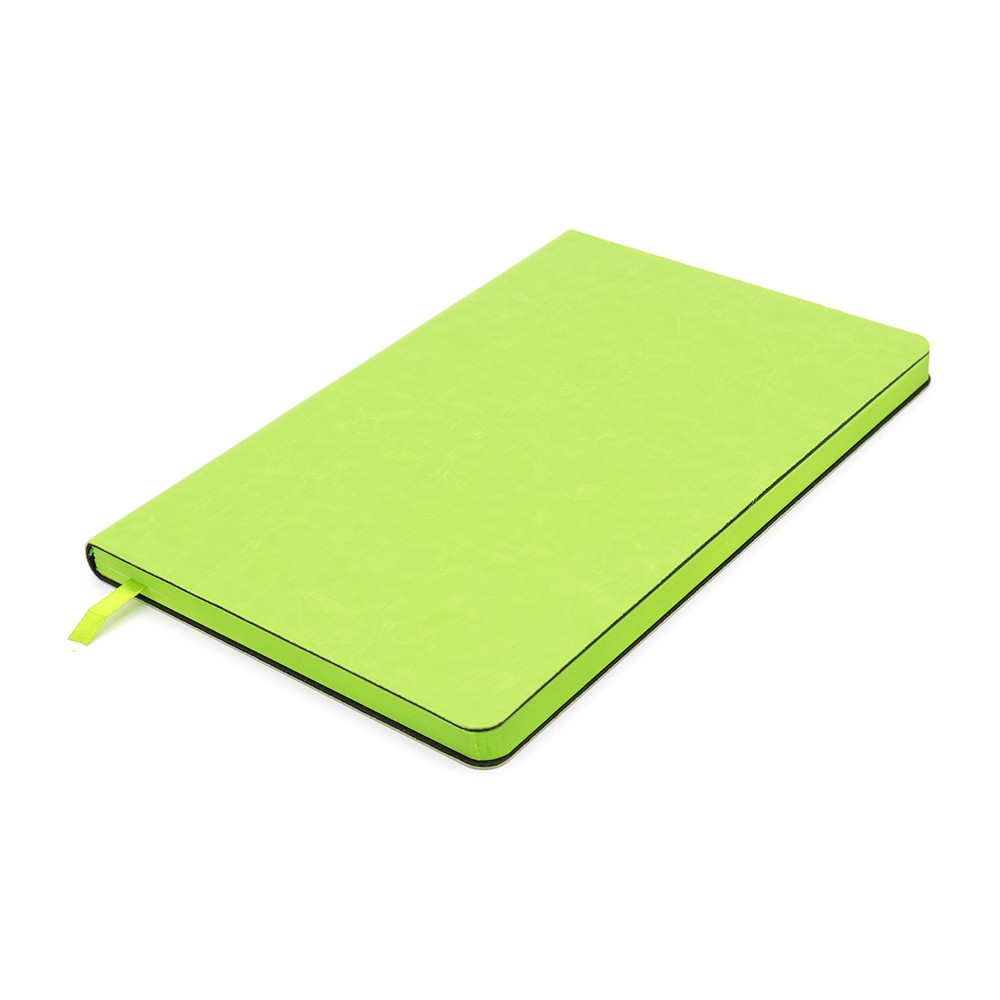 Блокнот формата А5 в мягкой обложке из искусственной кожи. Материал обложки - полиуретан. Размеры: 213*143мм, 96 листов, разлинееные страницы, бумага плотностью 70г/м2, срез прокрашен в цвет обложки. Ляссе в цвет обложки.