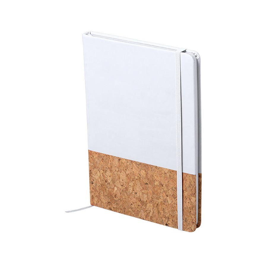 Блокнот BLUSTER, A5, твердый переплет, PU/пробковая ткань, нелинованный, белый, белый, бежевый
