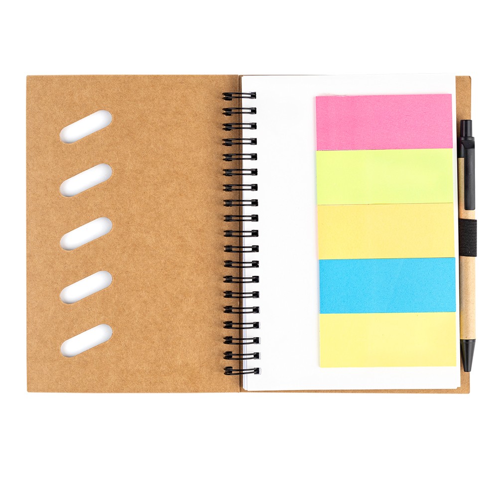 Стильный эко блокнот со стикерами и шариковой ручкой Гарольд, идеален для людей, которые записывают свои мысли от руки. Блокнот на пружине и с пробковой обложкой. Блокнот "Гарольд" включает в себя: - 70 листов, плотностью 70 г/м2. - 5 блоков стикеров (по 25 шт. каждого цвета) - шариковая ручка с синими чернилами.