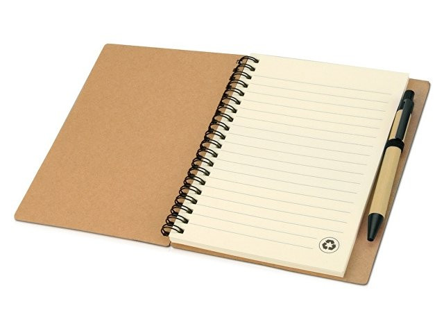Блокнот с 60 листами переработанной бумаги 70 г/м2 и картонной ручкой в цвет блокнота.