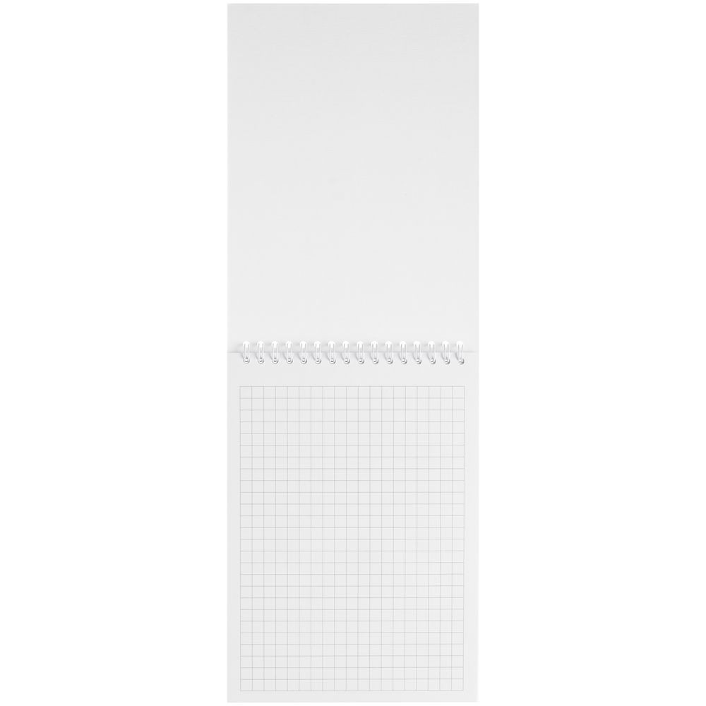 Блокнот на пружине с обложкой из белого мелованного картона плотностью 270 г/м² с покрытием софт-тач.