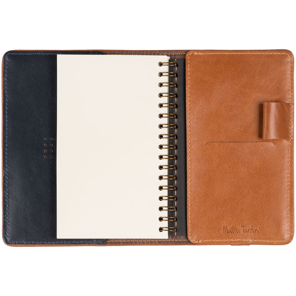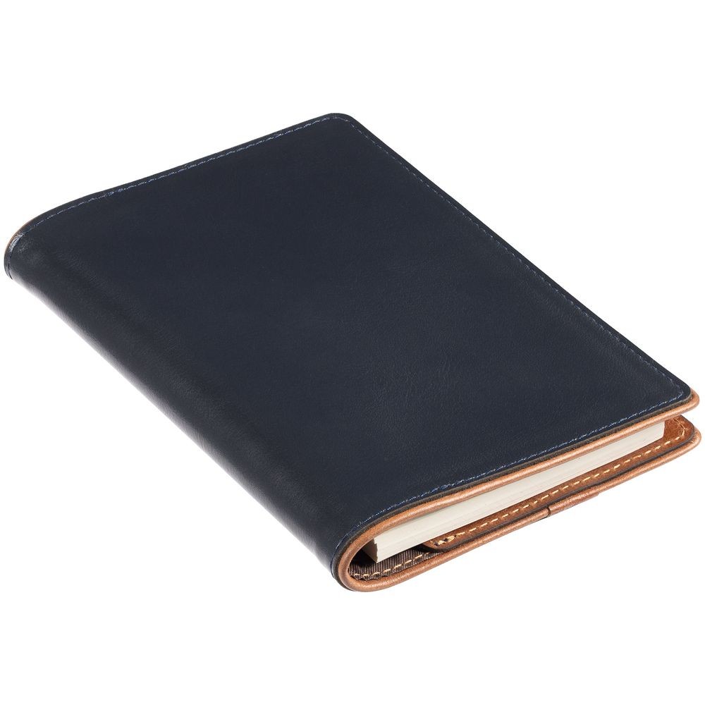 Чтобы передать этот удивительный контраст, для изделий Kalsa Palermo была выбрана гладкая натуральная кожа: глубокого синего цвета снаружи и светло-коричневого оттенка внутри. Оформленные в едином стиле, они легко собираются в подарочные наборы.