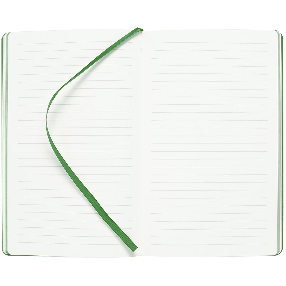 Блокнот в твердой обложке, выполнен из материала Soft Touch, зеленый FF, дополнен резинкой и ляссе в цвет обложки.