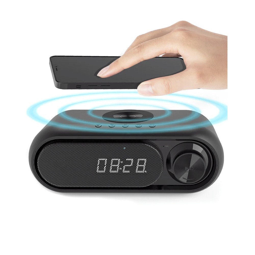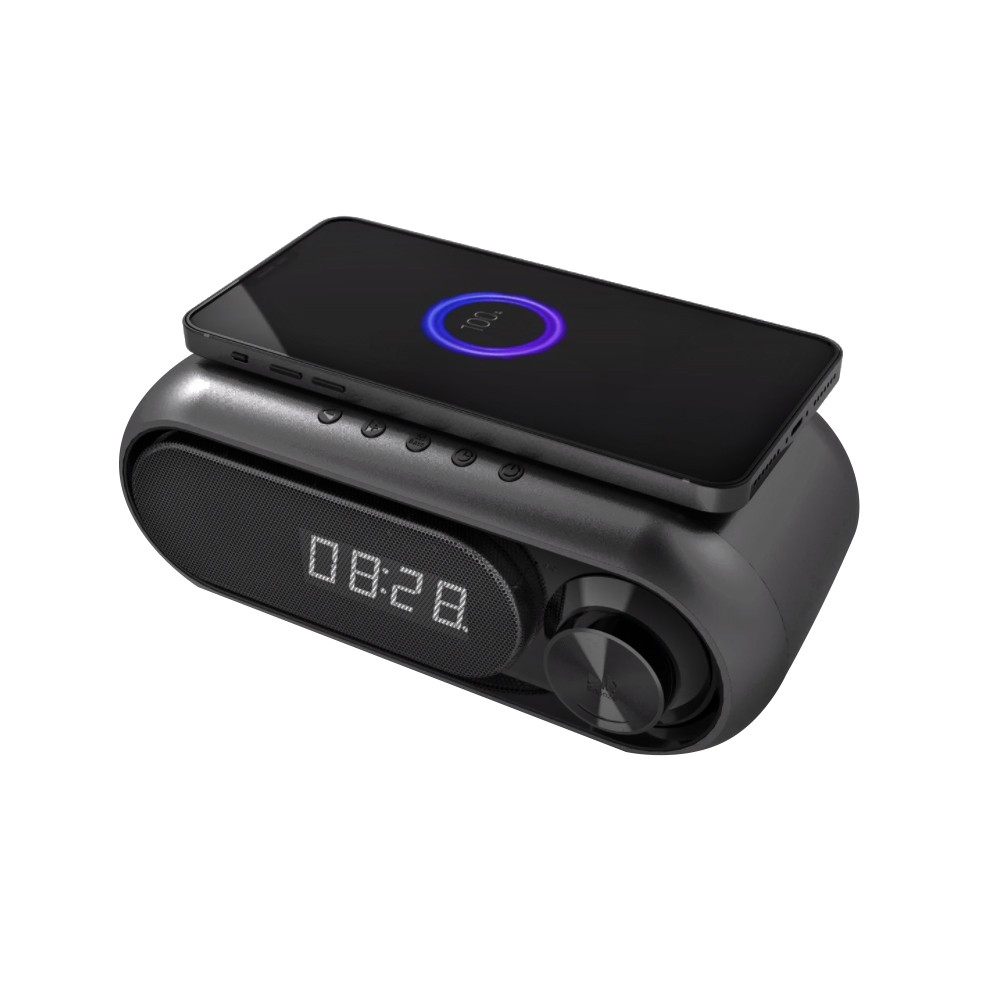 Многофункциональные электронные часы Radon с классической формой радиомагнитолы идеально подходят для любого интерьера офиса или квартиры. Функции: Время / Будильник / FM-Радио/ Беспроводная зарядка по технологии Qi мощностью 5W/ Беспроводная колонка/ Оснащена встроенным микрофоном, что позволяет использовать ее в качестве громкой связи для телефонных звонков.