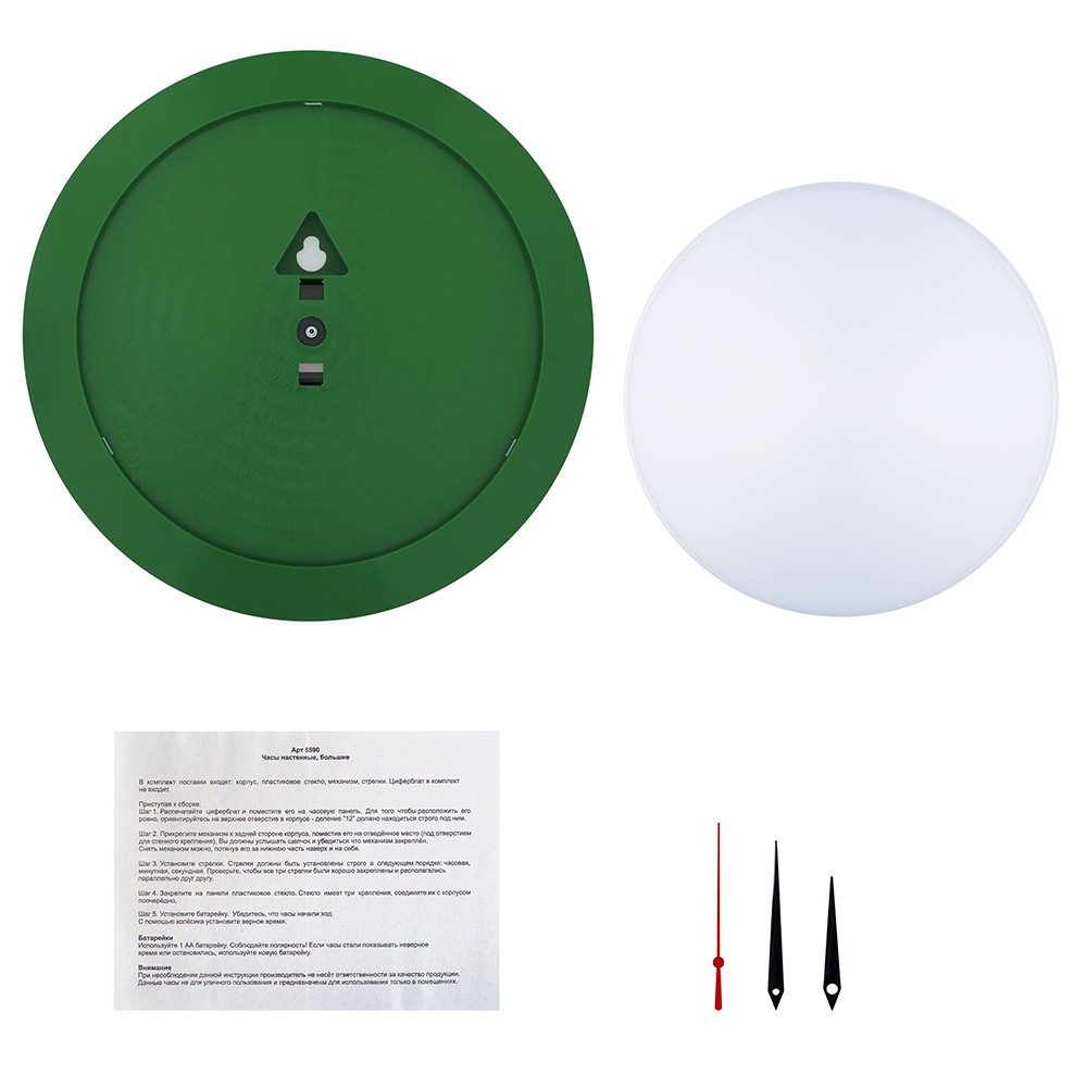 Часы поставляются в разобранном виде: корпус, крышка, стрелки, механизм и индивидуальная упаковка — коробка. Часовая и минутная стрелки — черного цвета, секундная — красного цвета. Циферблат в комплект не входит, но его можно изготовить в индивидуальном дизайне методом полноцветной печати. Просто подготовьте макет согласно конструктору, напечатайте его на плотном картоне, вырежьте по контуру и аккуратно поместите в часы. Устройство работает на батарейке типа АА (1 шт.). Батарейка в комплект не входит! Поставляется в индивидуальной коробке. Дизайн стрелок может незначительно отличаться от представленного на фотографиях.