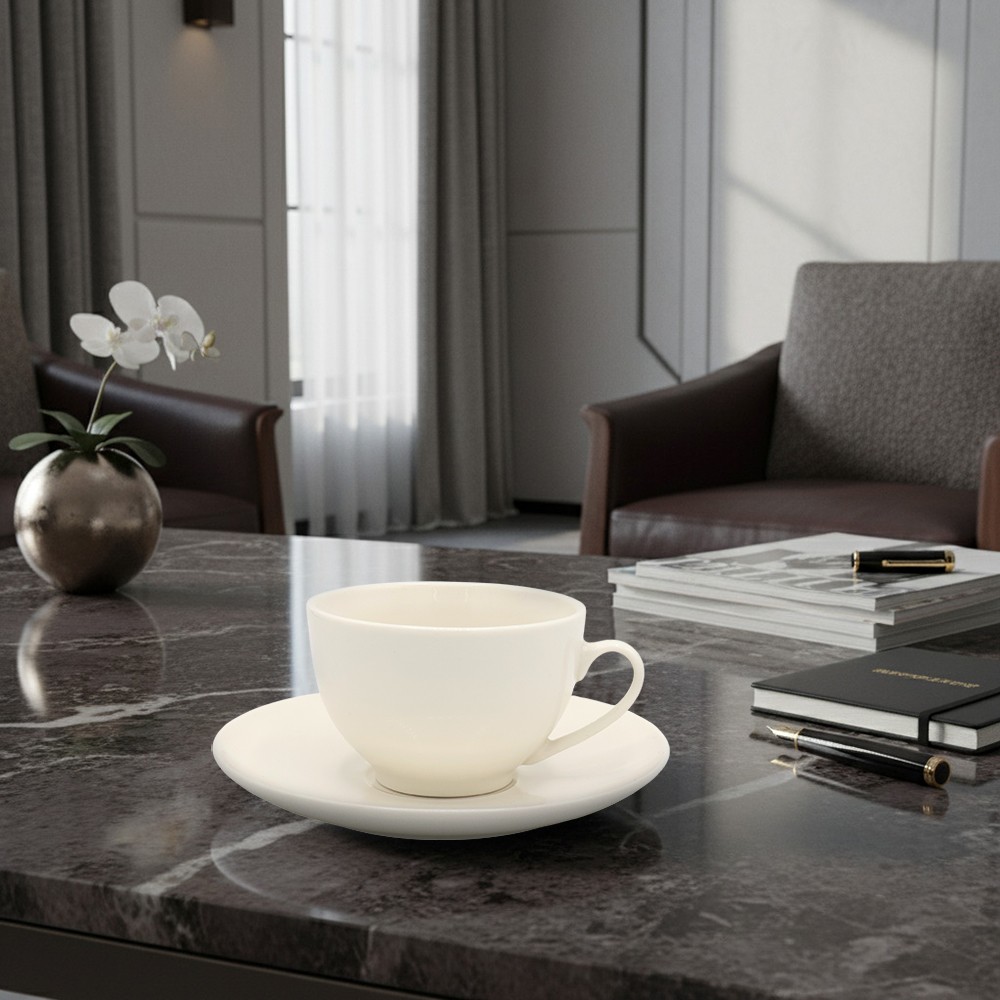 Чайная пара объемом 220 мл станет прекрасным украшением ваших приятных вечеров. Пусть каждое чаепитие превращается в особенное событие, наполняя дом уютом и теплом. Размер чашки: верхний диаметр 9,7cм, нижний диаметр 4,9cм, высота 6,1 cм. Размер блюдца: длина 15,8cм, высота 1,9 cм. Поставляется в индивидульной коробке. Размер индивидуальной коробки 16,2х16х7,8 см.