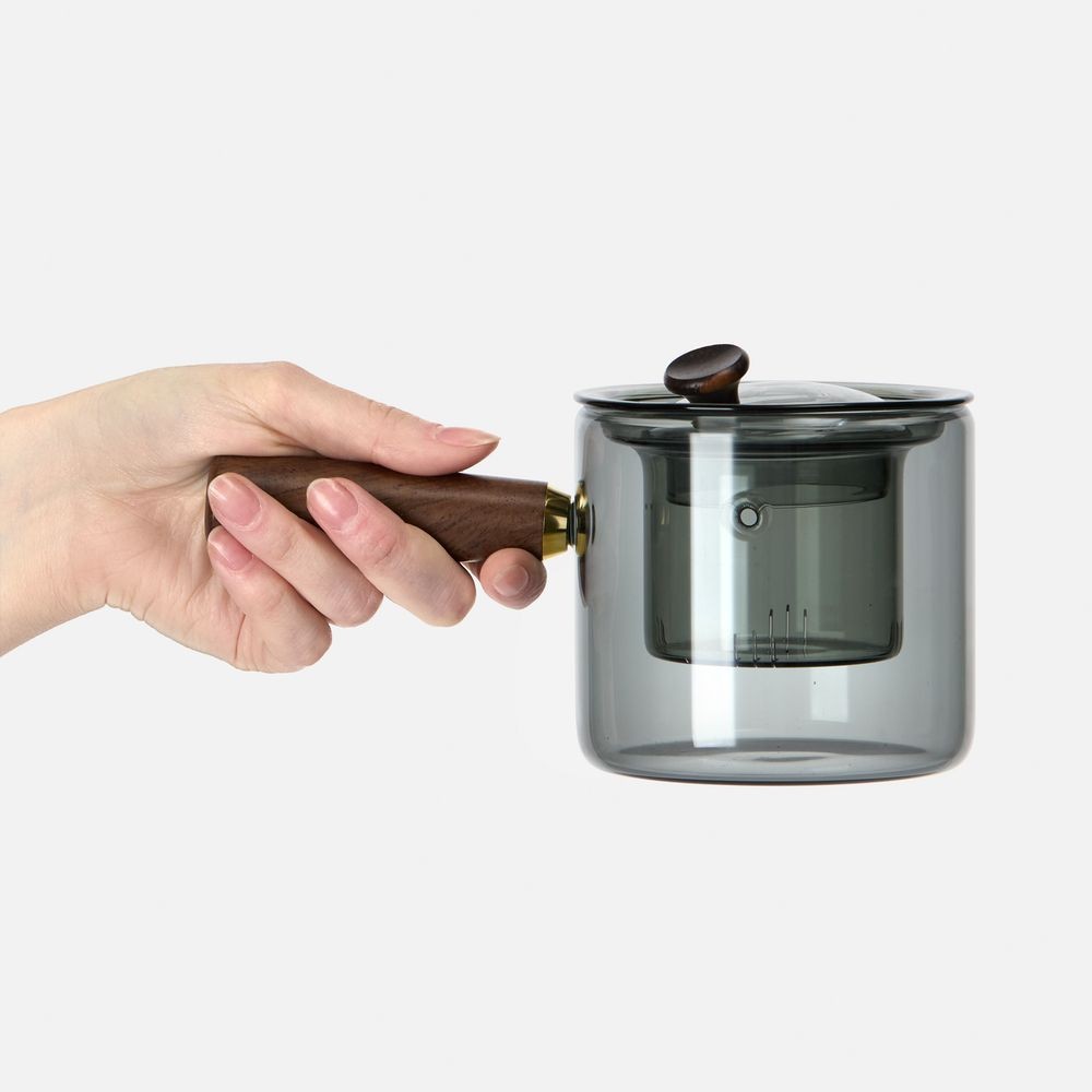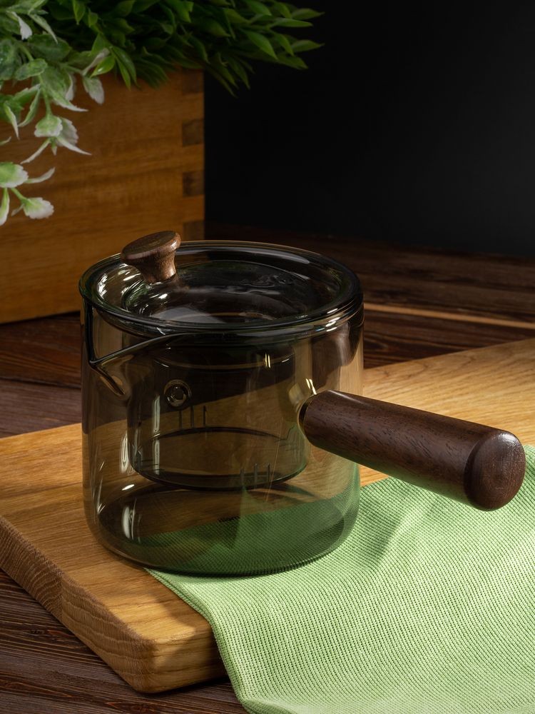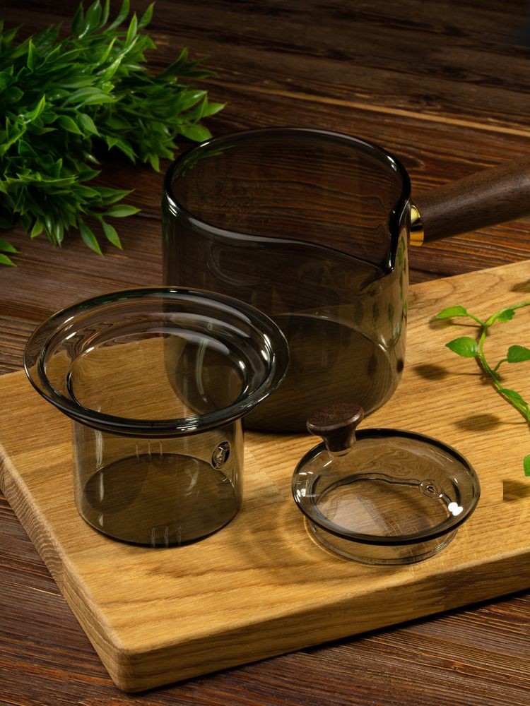 Проводник в мир спокойствия — чайник-ковш Hazy. Его мягкие линии, приглушенные цвета, стильная комбинация стекла и дерева создают атмосферу туманного утра, когда хочется укутаться в плед и насладиться чашкой горячего чая. Стеклянное сито с узкими прорезями поможет заварить чистый чай без чаинок, а эргономичная ручка — с удобством использовать чайник, не боясь обжечься.Hazy. Для моментов умиротворения. Поставляется в индивидуальной транспортной коробке. Емкость 500 мл.