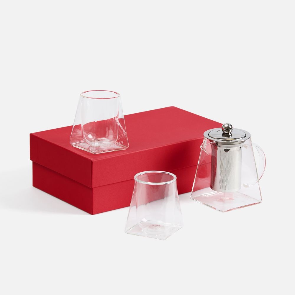 Материал: чайник, стаканы - боросиликатное стекло; крышка и сито - нержавеющая сталь; коробка - переплетный картон, бумага Classy Covers