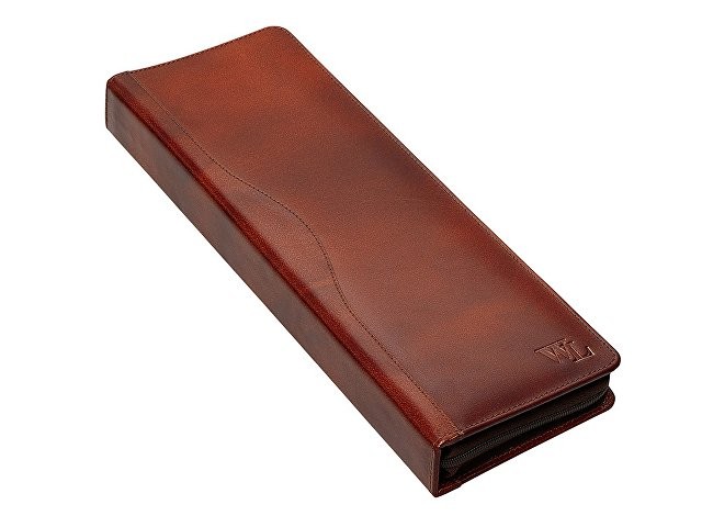 Компактный чехол для хранения галстуков оснащен двумя креплениями. Чехол выполнен из натуральной кожи коричневого оттенка. Благодаря чехлу аккуратно хранить и брать с собой галстуки в командировку стало еще удобнее.