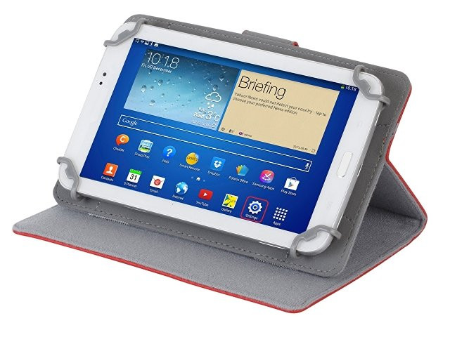 Чехол для планшетов до 7''. • Универсальный чехол для планшетов до 7" (Samsung Galaxy Tab 4 7.0/ Acer Iconia Tab B1-710 / Asus Fonepad Me372CL / Lenovo LePad A2207). • Чехол выполнен с использованием различных материалов: - материал верха - высококачественная искусственная кожа; - внутренний материал контактирующий с тачскрином - микрофибра; - внутренний материал в зоне крепления (под планшетом) - нескользящая дорогая искусственная кожа. • Запатентованная система крепления "4Sure" - универсальные зажимы из гибкого, прочного пластика на высококачественной эластичной ленте. Легко устанавливать и вынимать планшет. • С помощью двух скрытых липучек планшет можно фиксировать под разными углами в режиме просмотра. В закрытом состоянии фиксируется магнитной застежкой. В открытом - застежка крепится к обратной стороне, не мешая работе с планшетом. • Защита от боковых ударов. • Свободный доступ ко всем кнопкам, разъемам и динамикам. Мин. / Макс. внутренний размер (мм): от 106 x 175 / до 125 x 198.