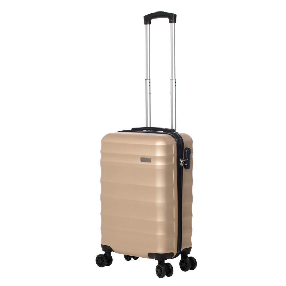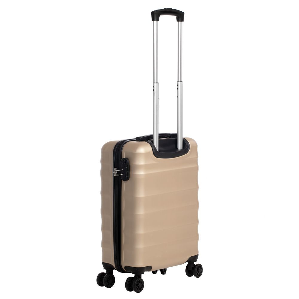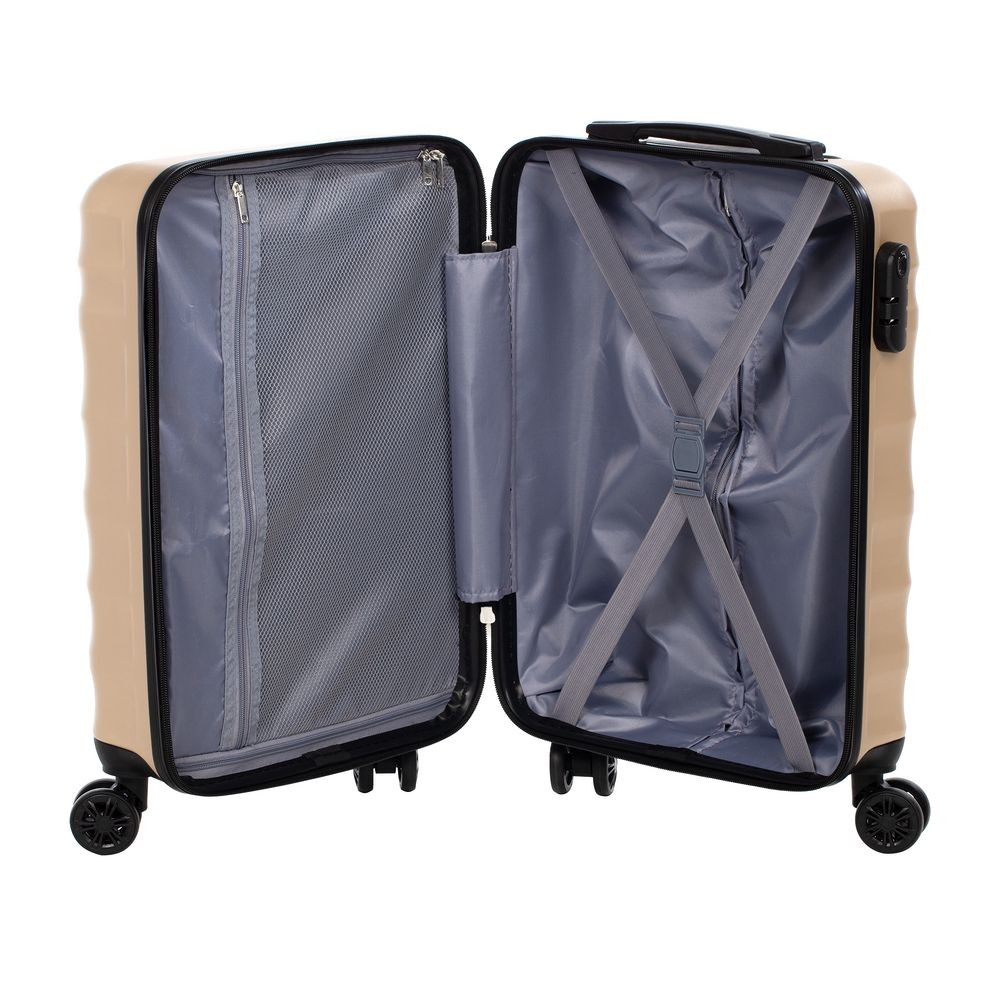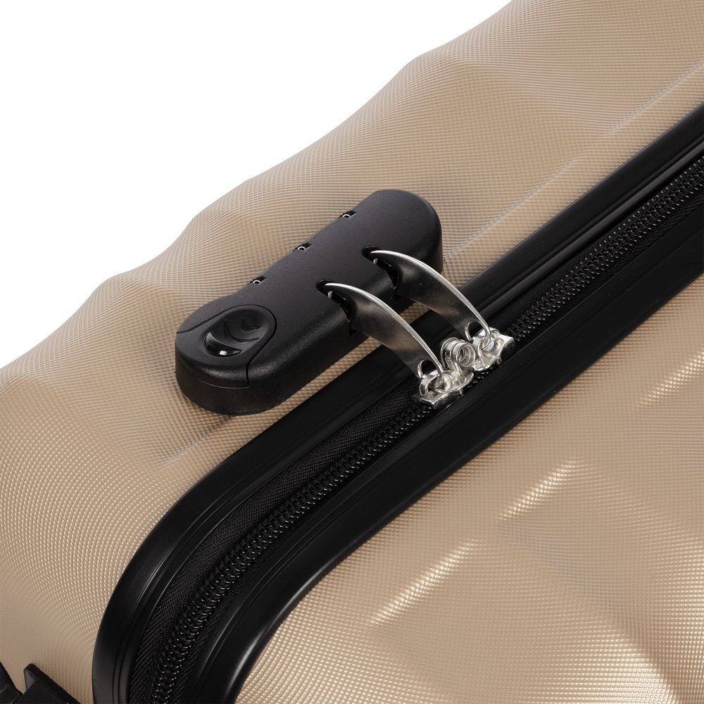 Для изготовления корпуса применяется прочный АБС-пластик последнего поколения. Специальные ребра жесткости повышают прочность конструкции и помогают нивелировать последствия удара при падении или другом механическом воздействии, а фактурная поверхность выполняет не только декоративную функцию, но и защищает чемодан от царапин.