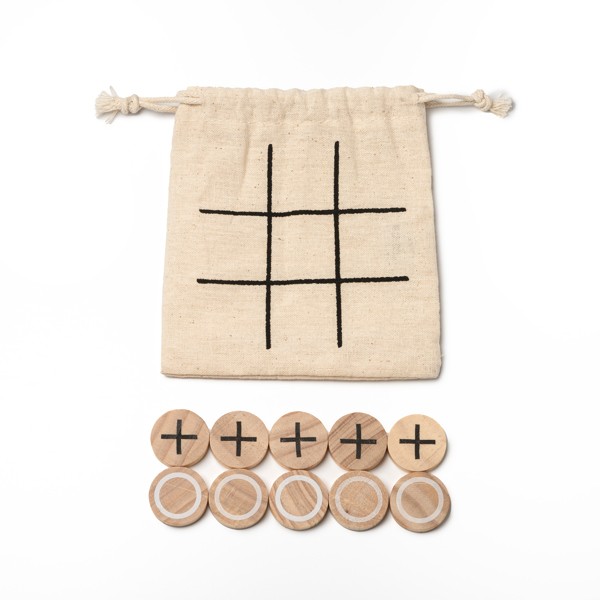 Деревянная игра "Крестики-нолики". В комплект входят 10 деталей, упакованных в мешочек из натурального хлопка.