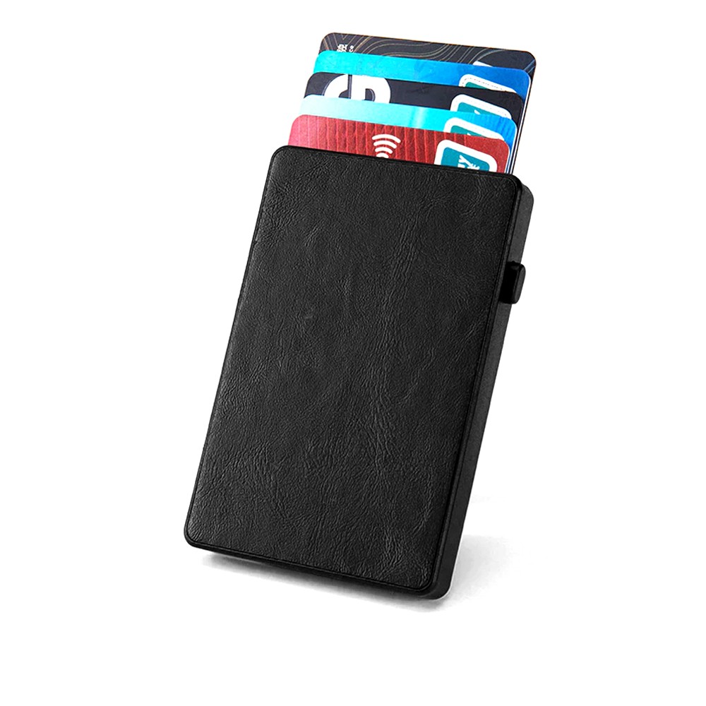 Современный практичный способ хранить и использовать банковские карты – держатель Amir с приятным покрытием из искусственной кожи. Боковая кнопка позволяет легко извлекать карты из бокса с защитным покрытием против копирования данных.