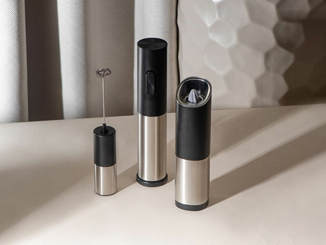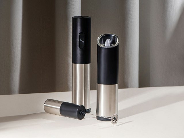 Электрический штопор «RIOJA» бренда Master of Wine — прекрасный подарок любителю вина: эта модель поставляется в комплекте с подставкой, которая также может выступать в роли ножа для фольги. Благодаря устойчивой и функциональной подставке штопор всегда будет под рукой, а внешний вид «Rioja» станет настоящим украшением барной стойки или кухни. Верхняя часть корпуса выполнена из матового пластика, который легко очищается от загрязнений влажной тканью. Тактильно приятный текстурный материал для удобства использования. Кнопки спуска и поднятия штопора визуально выглядят как одна большая кнопка, при нажатии на нижнюю часть которой спираль вкручивается в пробку по часовой стрелке, а при нажатии на верхнюю — освобождает пробку, вращаясь в противоположном направлении. От пользователя требуется лишь правильно расположить штопор на пробке и нажать на кнопку. Модель работает от 4 батареек АА, не имеет внутреннего аккумулятора. Батарейки не прилагаются в комплекте. - подставка с функцией ножа для фольги в комплекте - легко откупоривает вино - эргономичное строение: спираль полностью спрятана в корпусе, что обеспечивает долгий срок службы и защищает от порезов по неосторожности - дизайн продолжает общий стиль Master of Wine, можно сочетать с другими товарами бренда для создания сета - украсит собой любую кухню, благодаря подставке можно разместить удобным образом - понятная инструкция на русском языке в комплекте «Rioja» предназначен для пробок диаметром 20-24 мм и высотой до 44 мм. Внешний диаметр горлышка бутылок не должен превышать 35 мм, внутренний — быть в диапазоне от 17,5 до 23 мм.