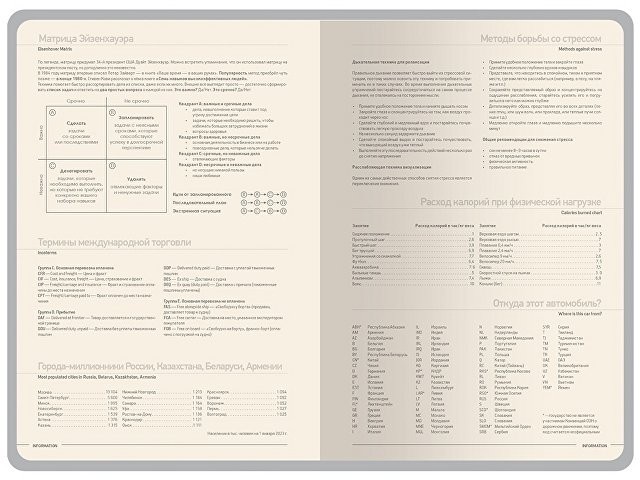 Стильный и современный, практичный и удобный, недатированный ежедневник "Megapolis Color" от Bruno Visconti для планирования рабочего времени и ведения деловых записей. Обложка изготовлена из искусственной кожи с Soft Touch покрытием. Обрез выполнен в цвет обложки ежедневника. Блок состоит из 272 страниц бежевой бумаги плотностью 70 г/кв.м. Для удобства навигации предусмотрена закладка-ляссе шириной 7 мм в цвет обложки. Недатированные страницы в серую линейку имеют отдельное место для проставления числа месяца и дня недели. Справочный блок на 17 страницах содержит полезную информацию из различных областей. Ежедневник выпускается в формате А5.