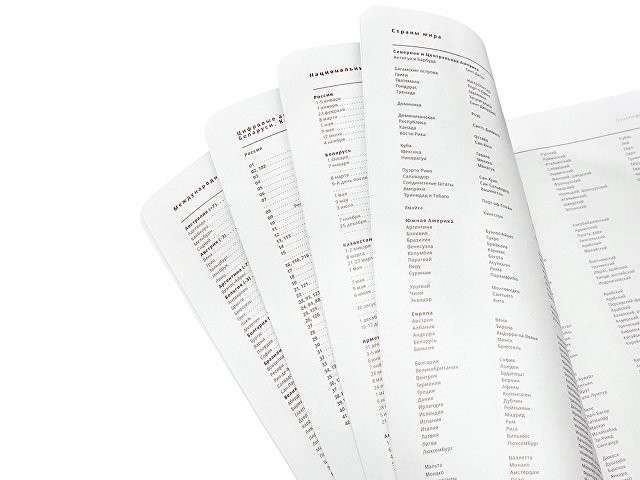 В ежедневнике «Mercury» есть полезная справочная информация, а также 272 страницы для записи идей, мыслей и составления рабочих планов. Для изготовления страниц используется качественный белый офсет повышенной плотности (70 г/кв м), которая производится в Японии и подходит для всех видов чернил.