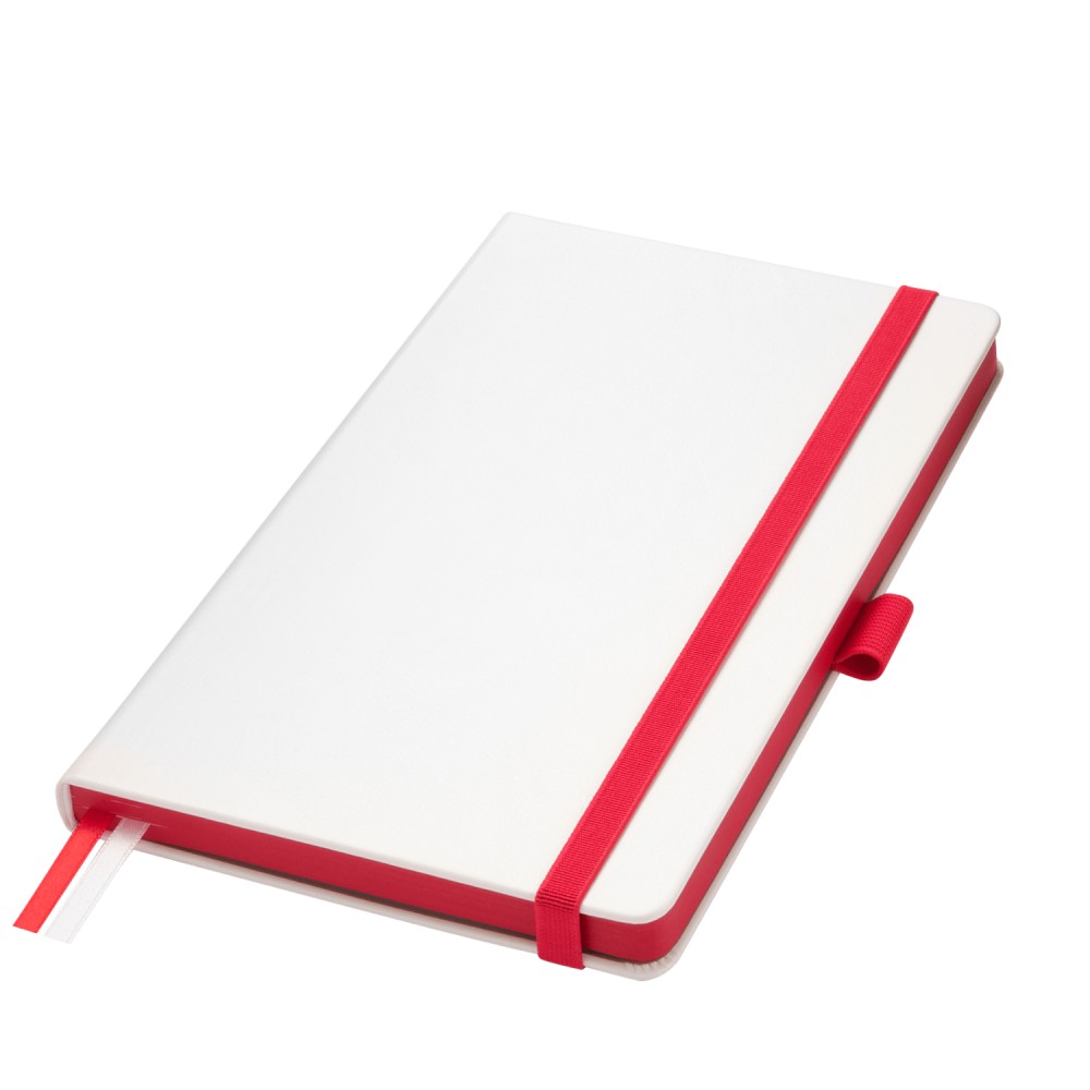 Недатированный ежедневник выполнен в жесткой обложке из искусственной кожи со скругленными уголками. Переплетный материал гладкий, с легкой естественной паутинкой морщин, имеет полуглянцевый блеск. Цвет – чистый белый. Серые матовые форзац и нахзац, а также красный срез блока создают оригинальный динамичный цветовой ансамбль и подчеркивают белизну обложки. Страницы светло-кремового цвета, из гладкого офсета, слегка шелковистые, со скругленными уголками. Добавляют изделию мягкую комфортную теплоту. Двойное атласное ляссе составлено из красной и белой лент. Каждая шириной 6 мм, имеет легкий блеск. Вертикальная фиксирующая резинка прочная, надежная и удобная, в тон срезу. Есть петелька для ручки в тон резинки. Карман на заднем форзаце.