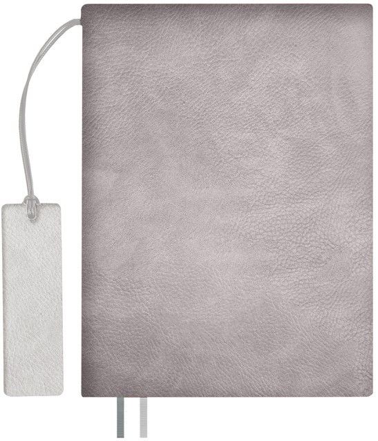 Ежедневник с гибкой обложкой и закладкой из искусственной кожи, дополнен капталом и двойным ляссе.