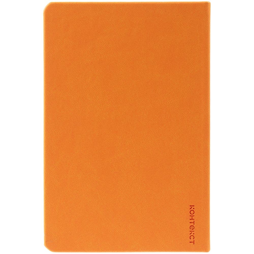 Ежедневник с твердой обложкой, выполнен из материала Latte, оранжевый ОО, дополнен ляссе в цвет обложки.