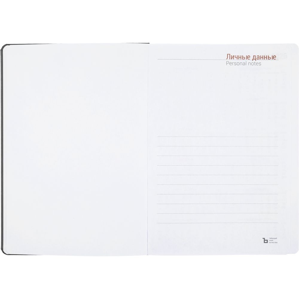 Ежедневник с твердой обложкой, выполнен из материала Latte, темно-серый ЕЕ, дополнен ляссе в цвет обложки.Блок 207, с информационным блоком: