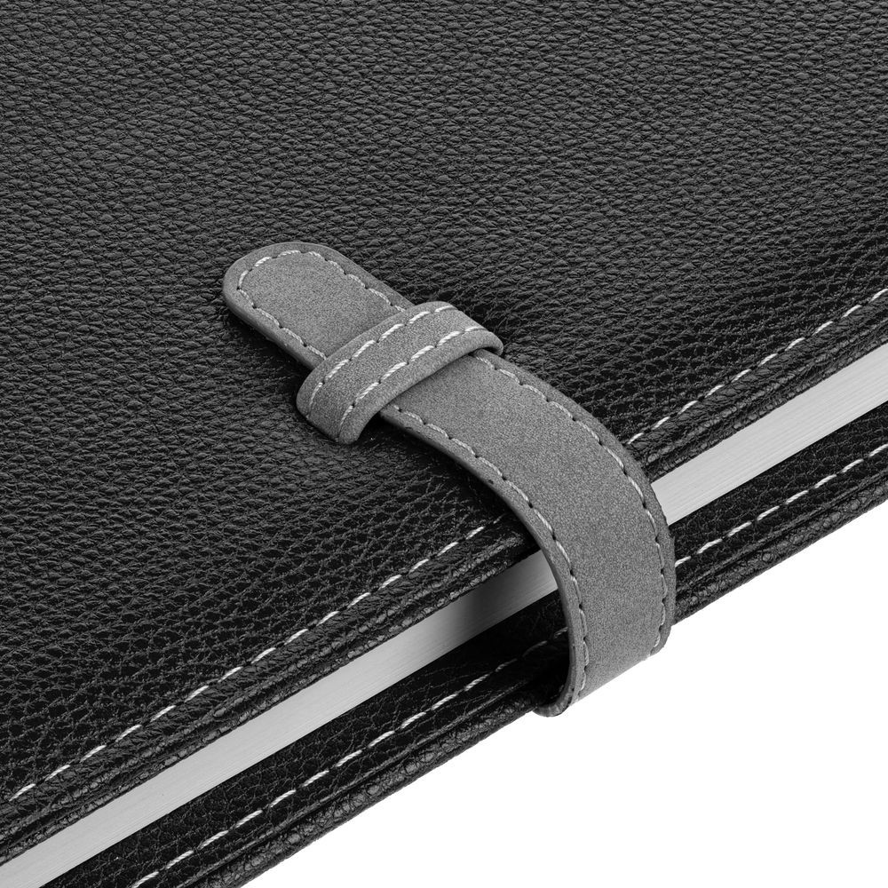 Ежедневник в мягкой суперобложке, выполнен из материала La Fite, темно-серый ЕЕ, дополнен ляссе серого цвета.