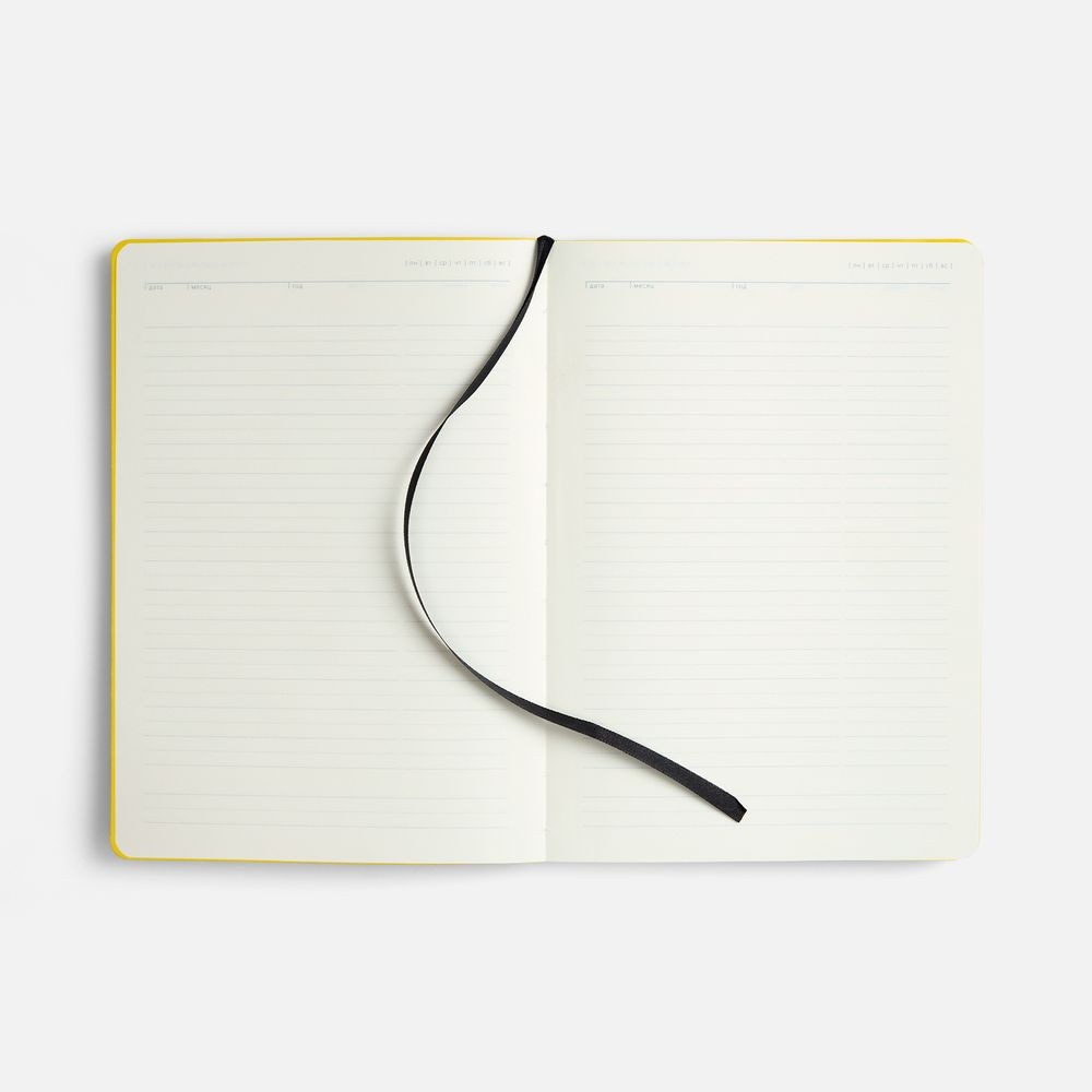 Ежедневник с гибкой обложкой, выполнен из материала Cowhide, дополнен ляссе в цвет обложки.