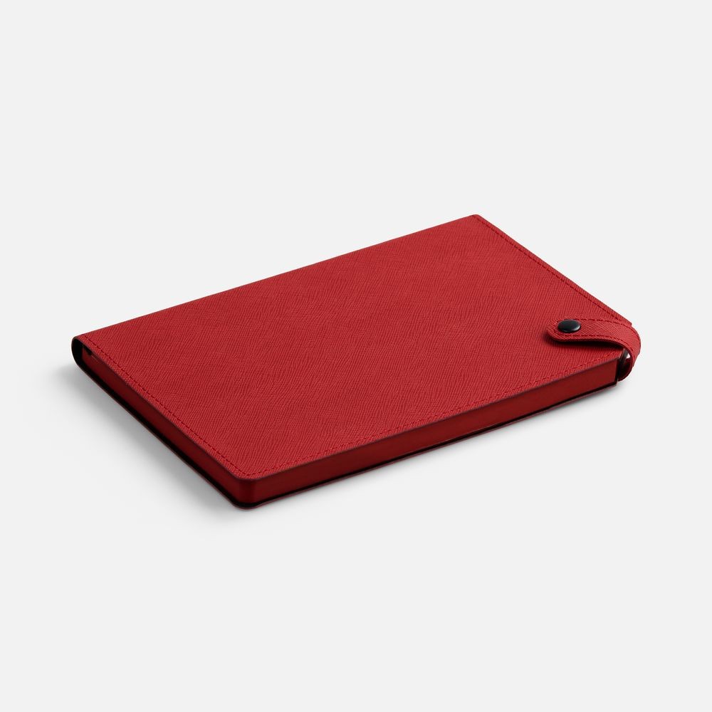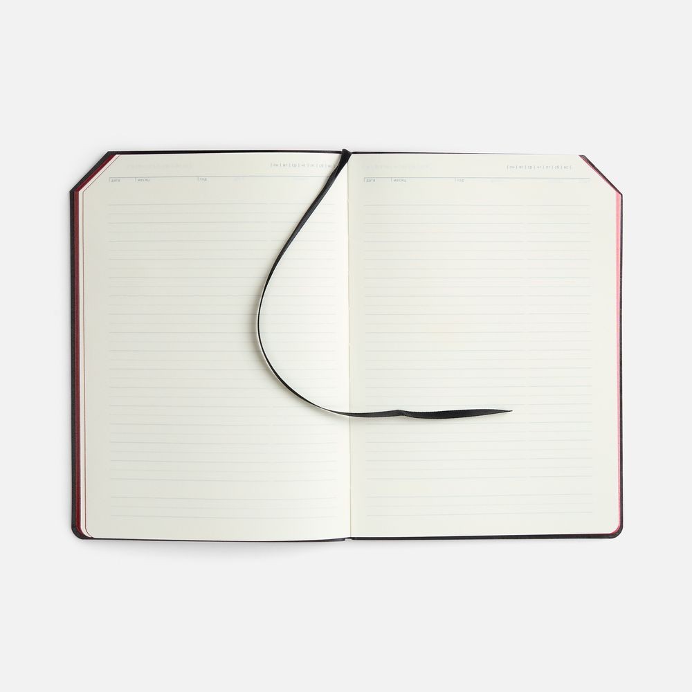 Ежедневник с гибкой обложкой, выполнен из материала Espresso, дополнен ляссе черного цвета и хлястиком на кнопке.