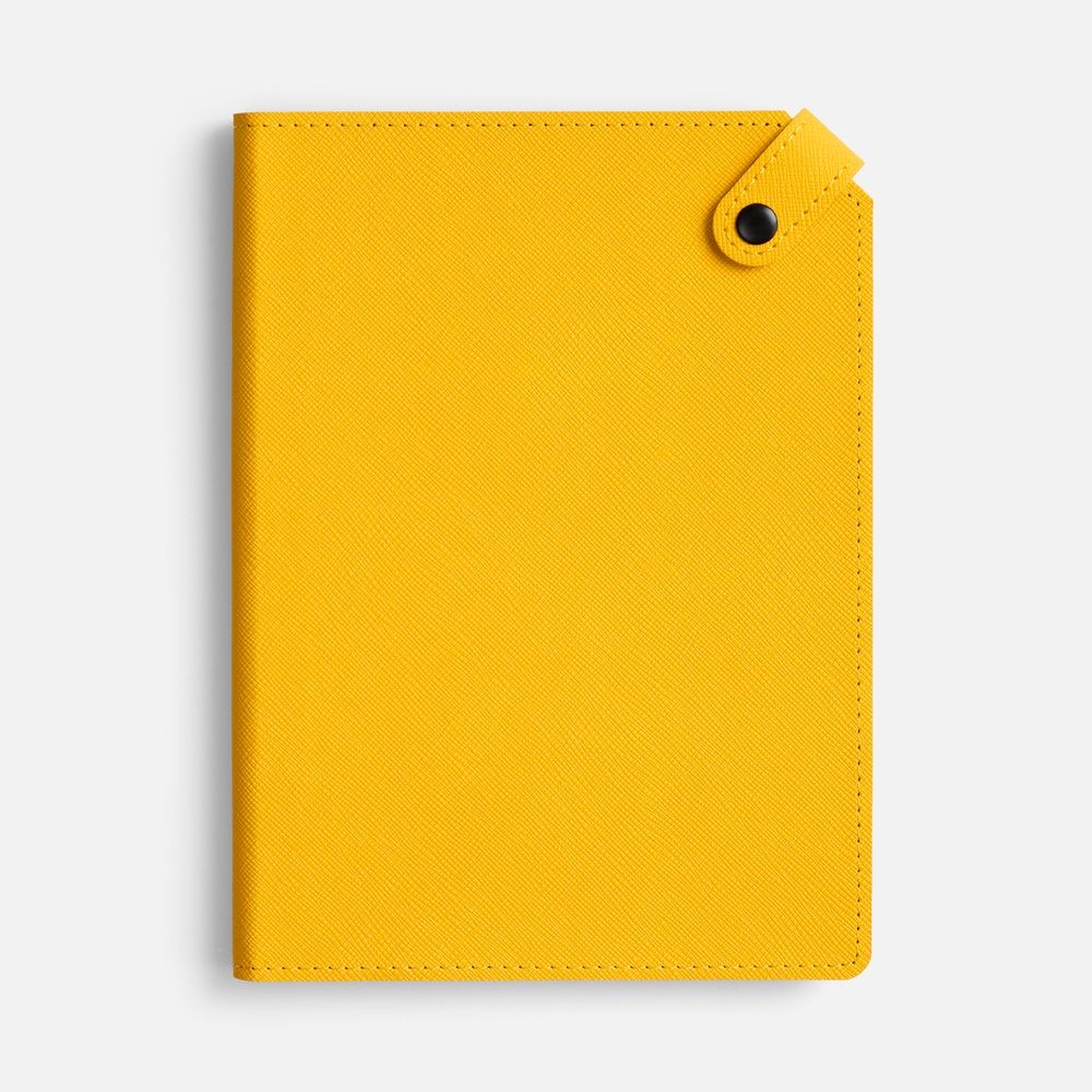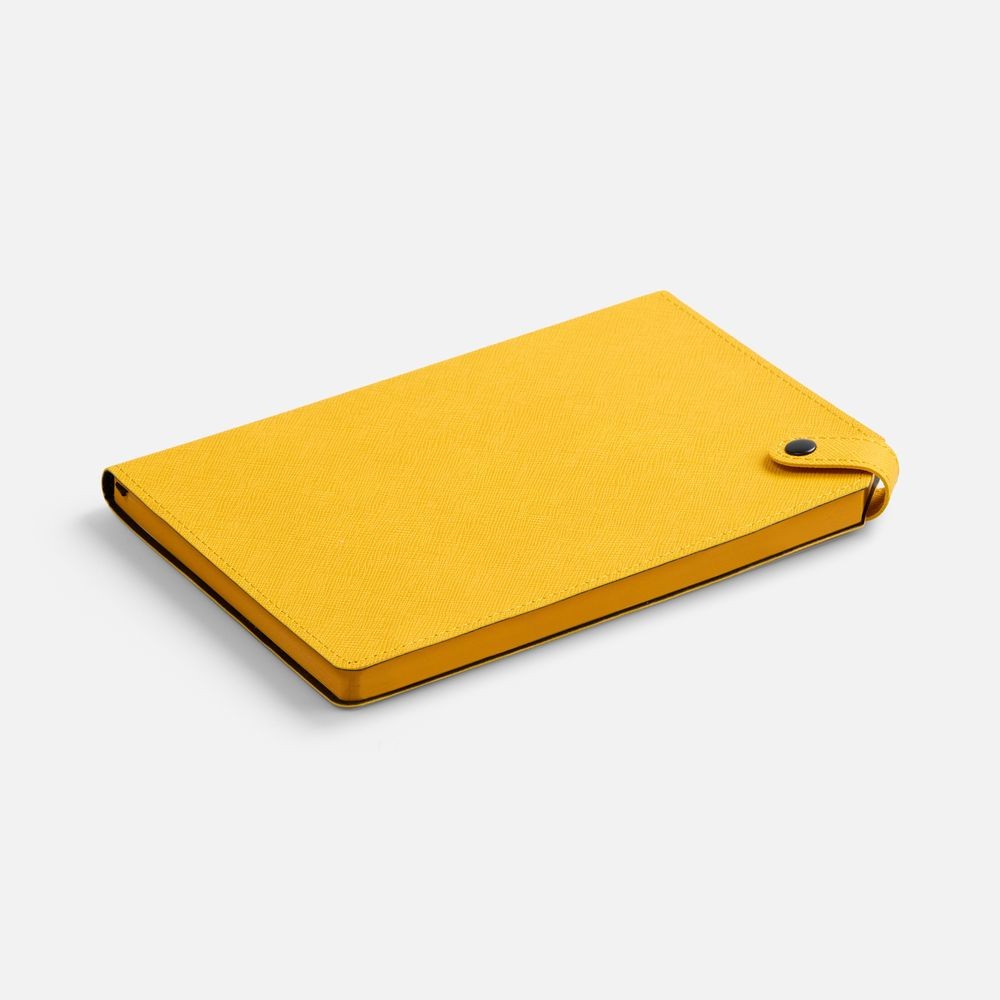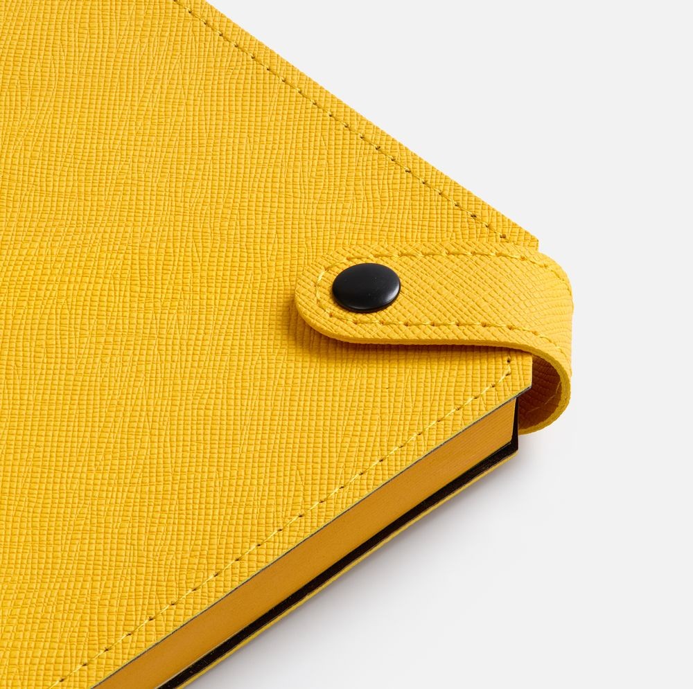 Ежедневник с гибкой обложкой, выполнен из материала Espresso, дополнен ляссе черного цвета и хлястиком на кнопке.