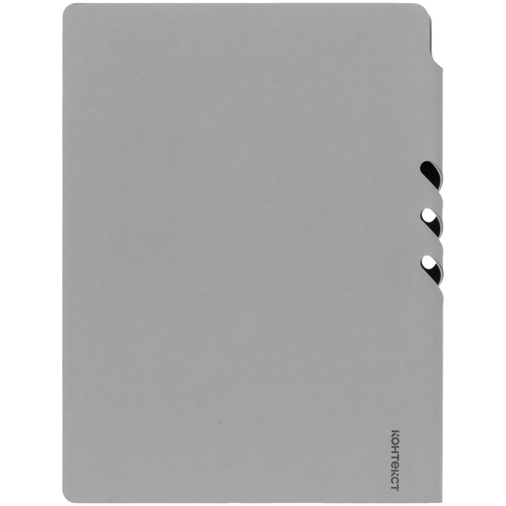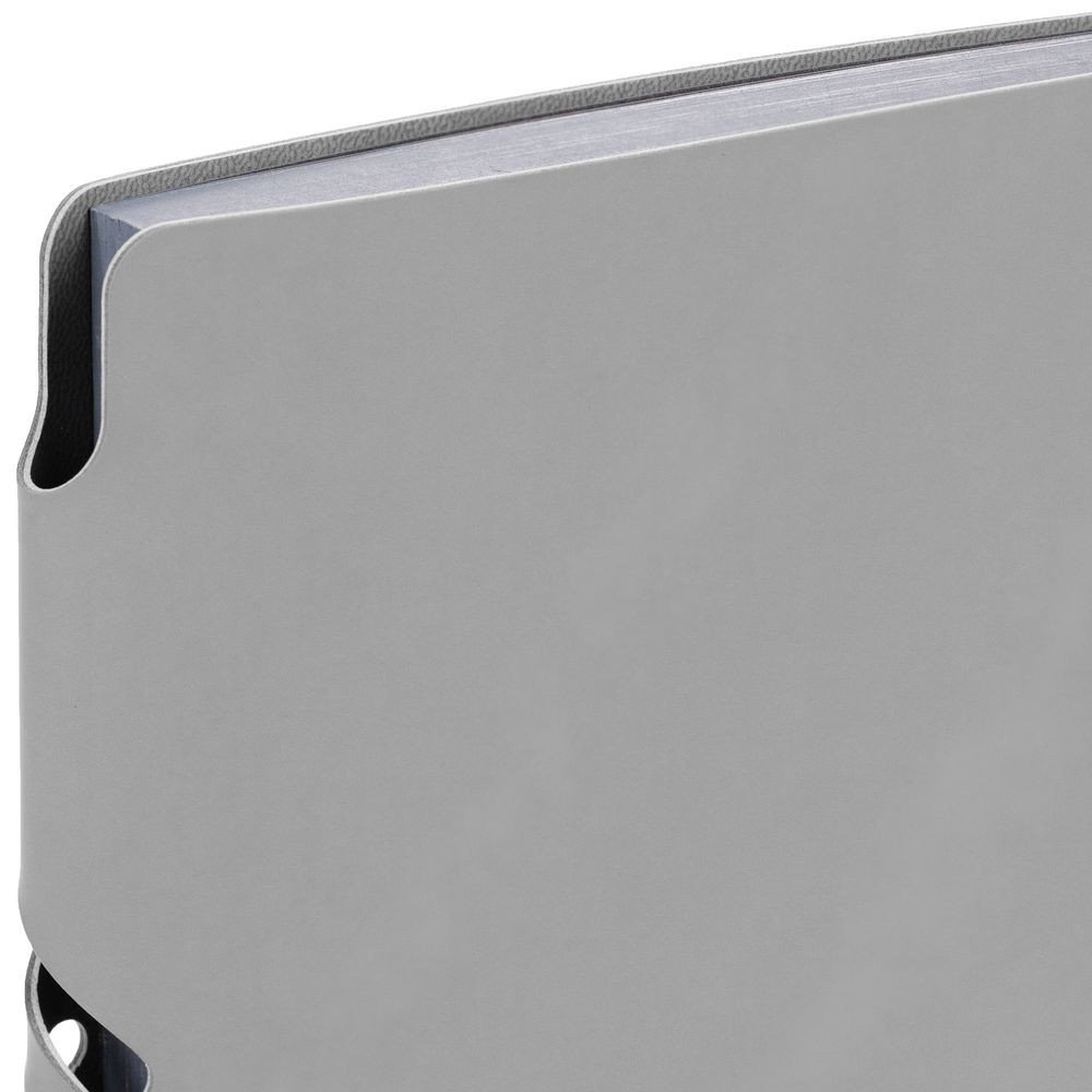 Гибкая обложка выполнена из материала Soft Touch, серый СС и Latte, серый СС (внутренняя часть обложки). Внутри корешка — специальное место для крепления ручки размером до 15х1 см.