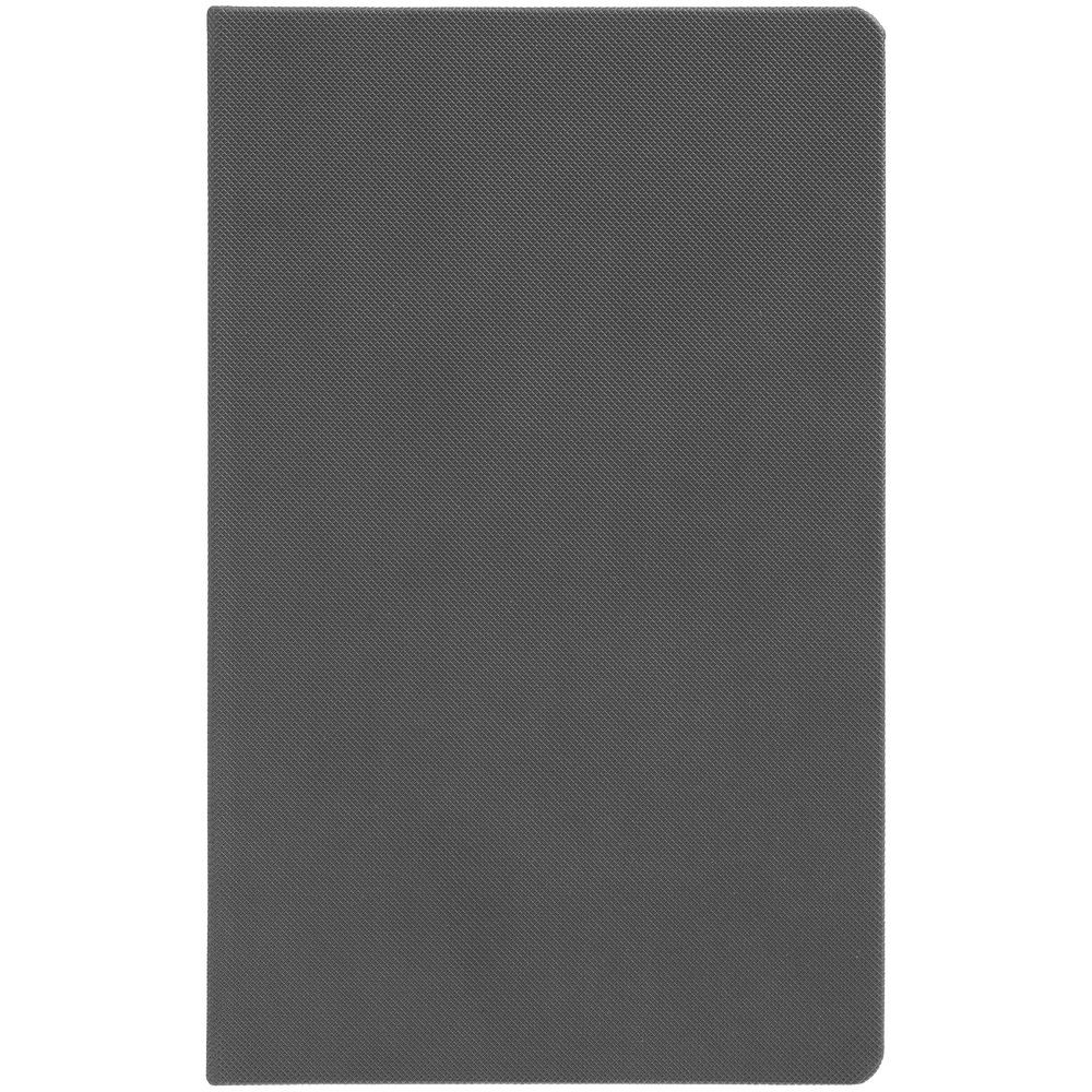 Ежедневник с твердой обложкой, выполнен из материала Canyon, темно-серый ЕЕ, дополнен ляссе в цвет обложки.