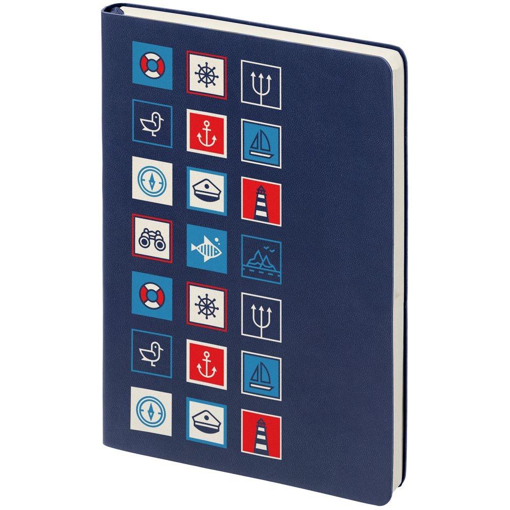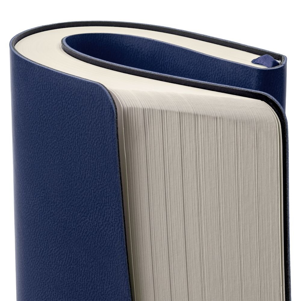 Ежедневник с гибкой обложкой, выполнен из материала Latte, темно-синий, дополнен ляссе в цвет обложки.