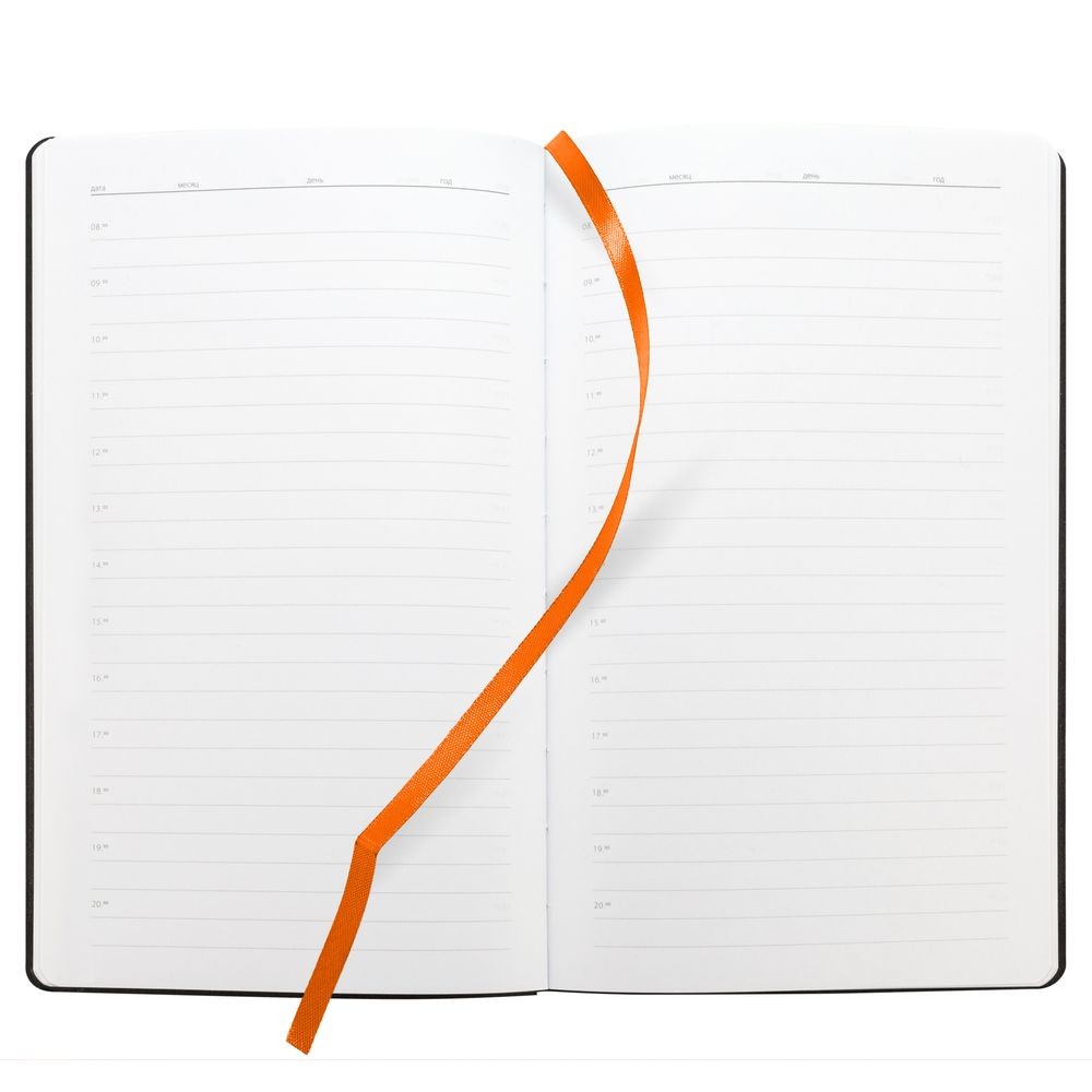 Ежедневник с гибкой обложкой, выполнен из материала Canyon, оранжевый ОО, дополнен ляссе в цвет обложки. Блинтовое тиснение на обложке создает эффект вязаного полотна.