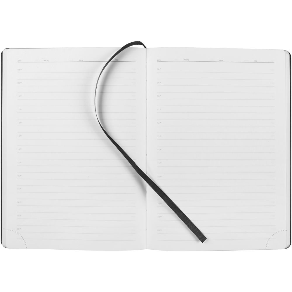 Ежедневник с твердой обложкой, выполнен из материала Brand, черный АА, дополнен ляссе в цвет обложки.Блок 985: