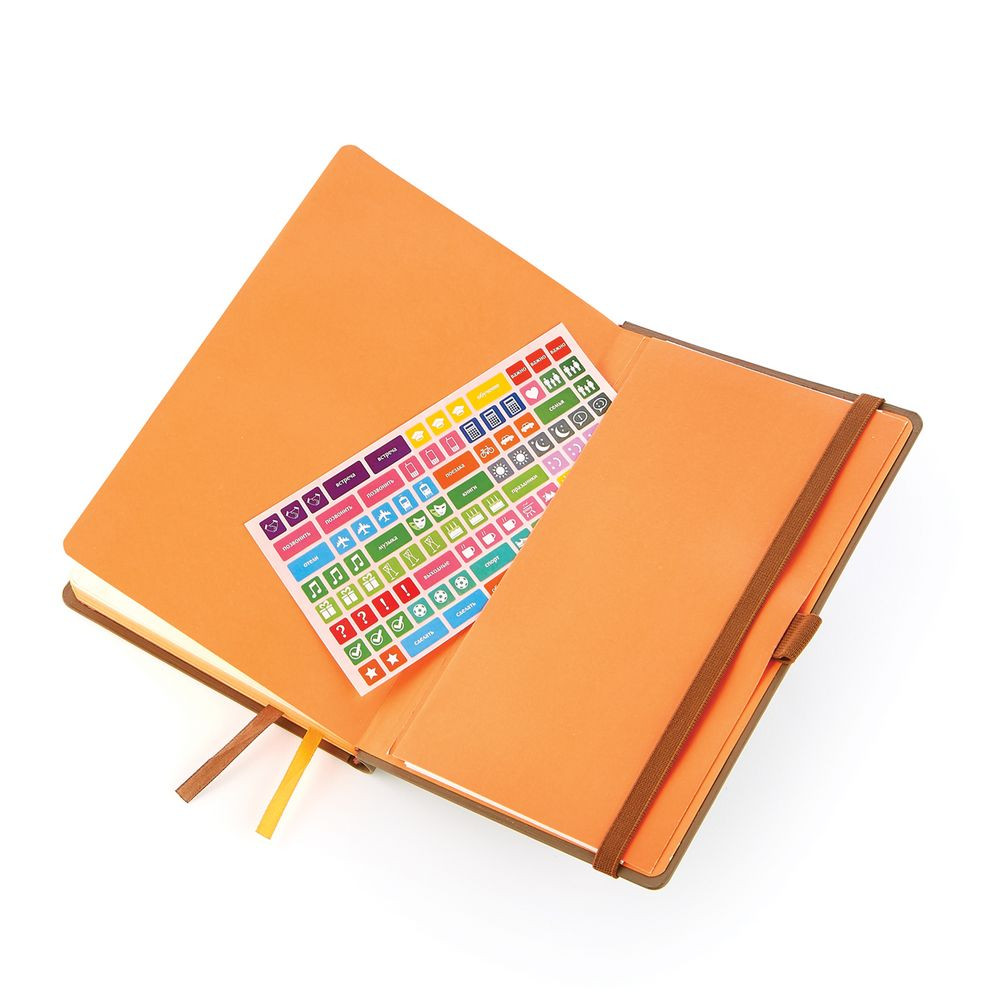 Материал обложки с имитацией рельефа натуральной фактурной кожи, на нахзаце вклеен конверт для бумаг.