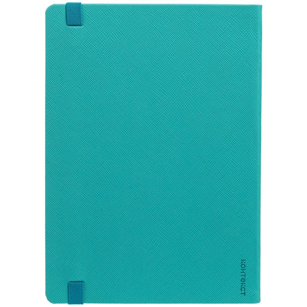 Ежедневник с полутвердой обложкой выполнен из материала Nice Touch, морская волна II, и дополнен резинкой шириной 1 см с металлическим шильдом и ляссе в цвет обложки.