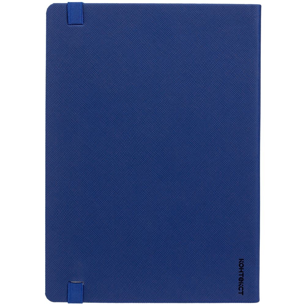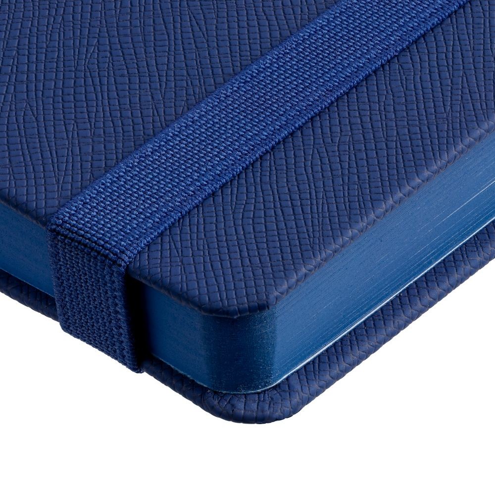 Ежедневник с полутвердой обложкой выполнен из материала Nice Touch, синий НН, и дополнен резинкой шириной 1 см с металлическим шильдом и ляссе синего цвета.
