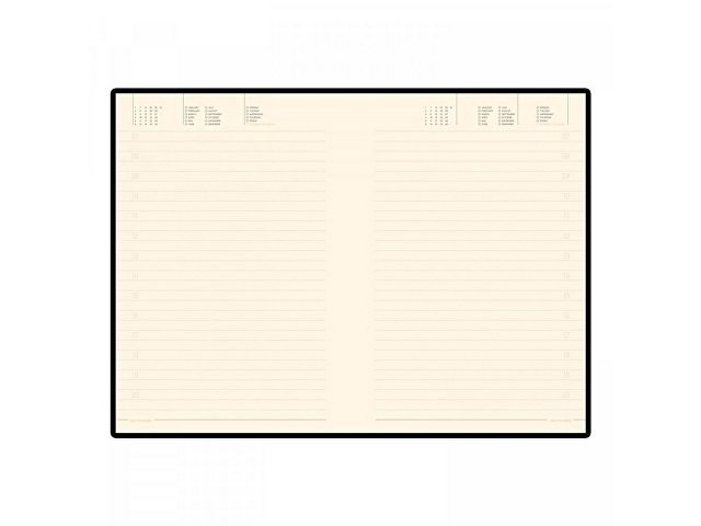 Недатированные деловой ежедневник «Tintoretto». Реальный шов по периметру в цвет материала Гибкий мягкий материал обложки прекрасно подходит для нанесения тиснения. Ежедневники выпускаются в формате В5, его размеры составляют 185 х 230 мм. Блок - 136 листов соединен полускрытым металлическим гребнем. Для блока используется высококачественная бежевая бумага, обладающая плотностью 70 грамм. В начале ежедневника расположены страницы со справочным материалом.