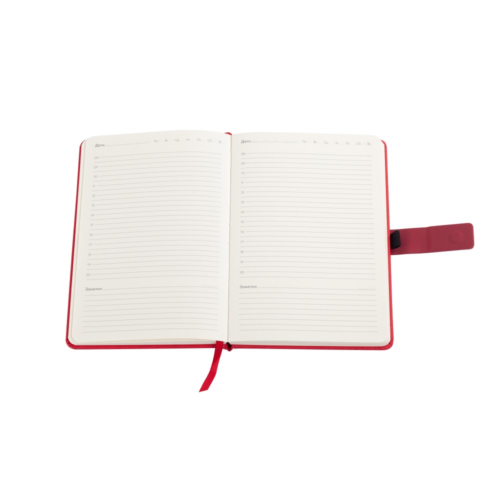 На лицевой стороне ежедневника предусмотрен карман для карт, записок, визиток. Чтобы заметки и записи были под контролем, а пользователь в любой момент мог внести новую информацию - у "Монти" предусмотрена петелька для ручки. Кроме того, ежедневник закрывается на магнитный хлястик.