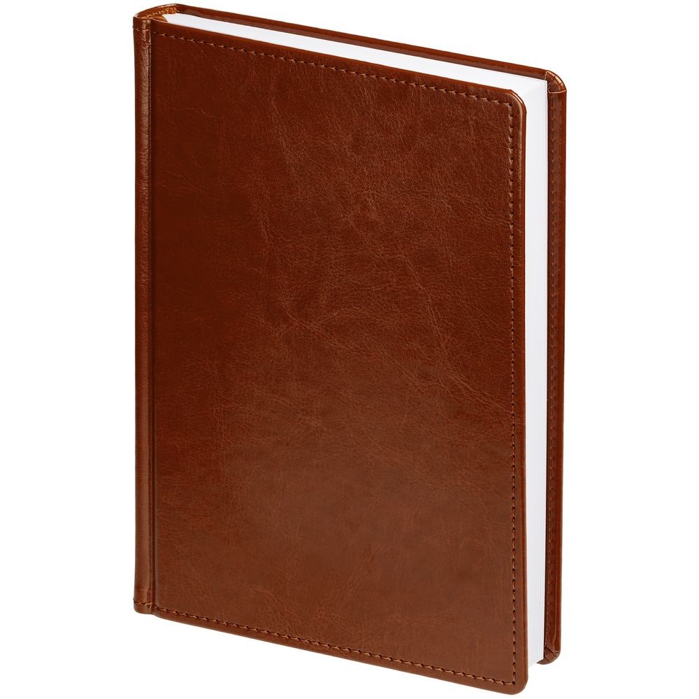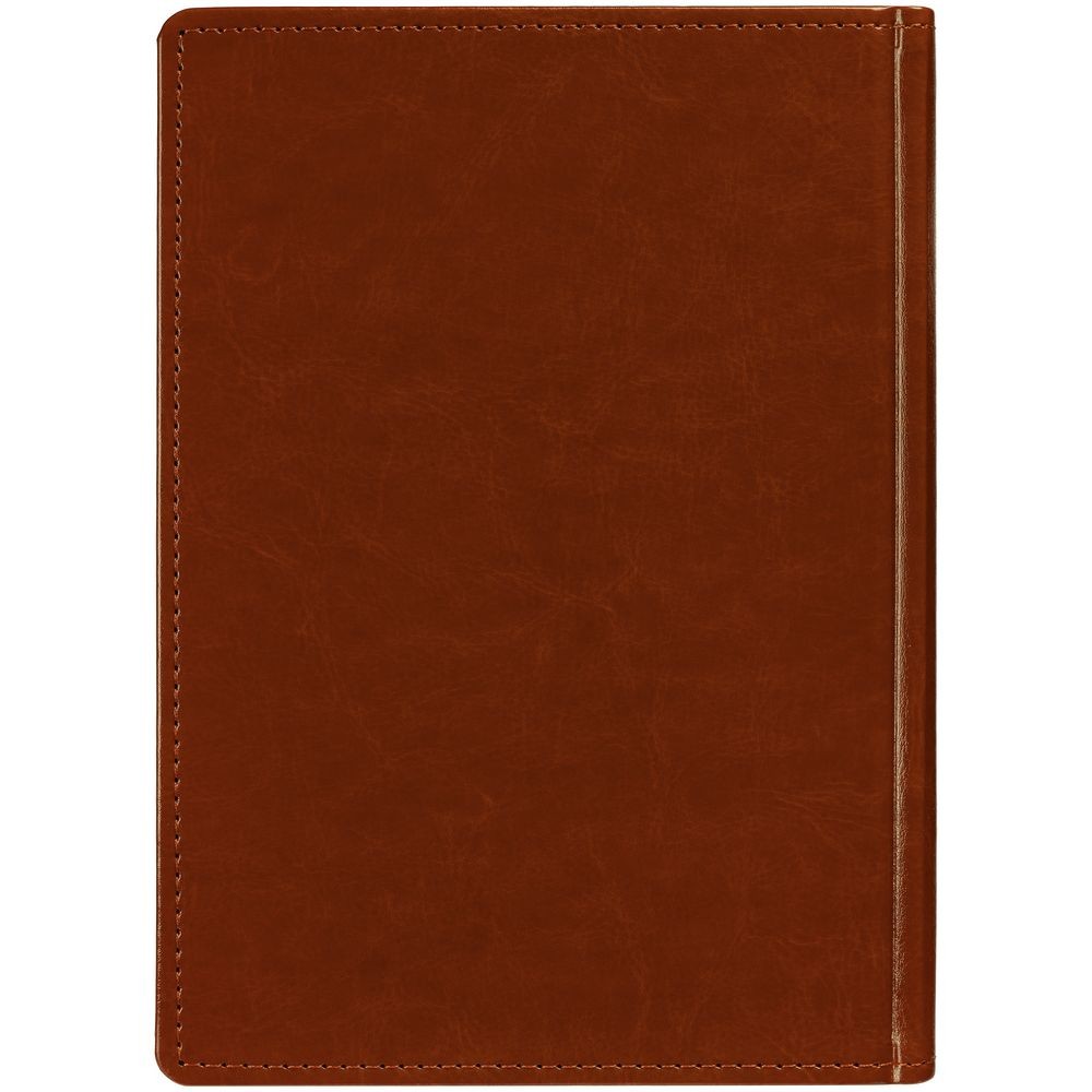 Ежедневник с твердой обложкой без поролона, выполнен из материала Nebraska, коричневый RR, дополнен ляссе и капталом в цвет обложки.