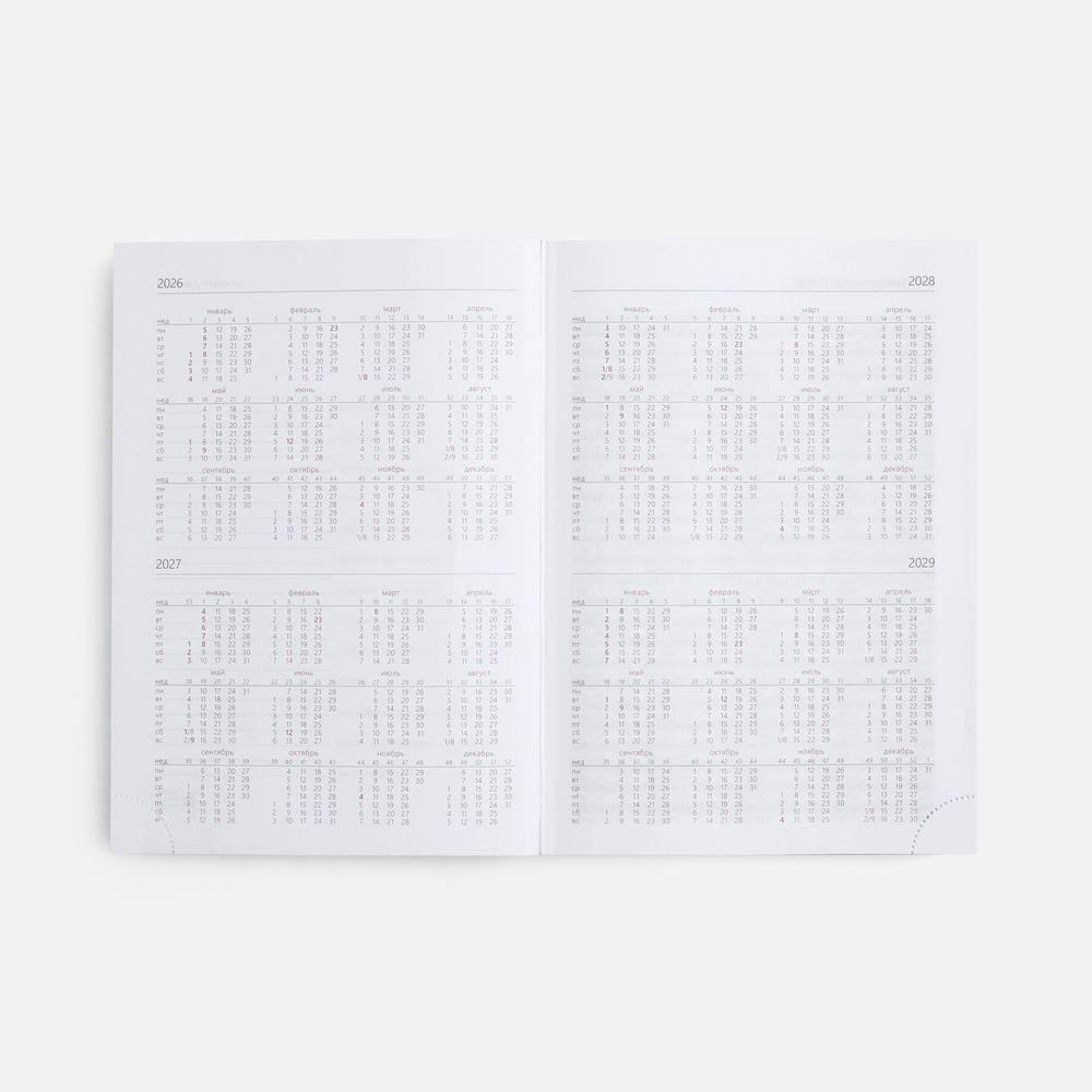 Ежедневник с твердой обложкой без поролона, выполнен из материала Nebraska, красный PP, дополнен ляссе и капталом в цвет обложки.