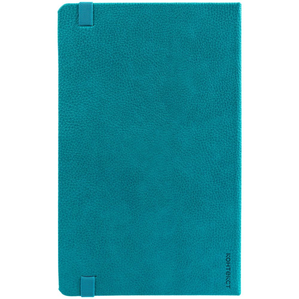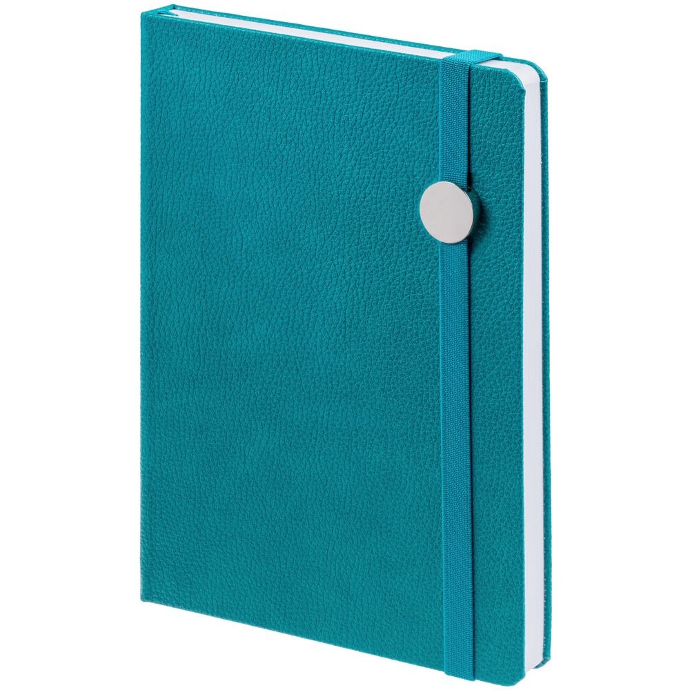 Ежедневник с твердой обложкой, выполнен из материала LaFite, цвет морской волны II, дополнен резинкой с металлическим круглым шильдом и ляссе в цвет обложки.