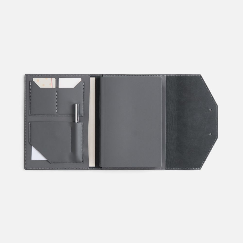 Ежедневник-органайзер в мягком переплете, формат А5+, с карманами для визиток и документов, петлей для ручки. Дополнен ляссе и капталом в цвет обложки. Клапан с прорезями застегивается на кобурные металлические кнопки.